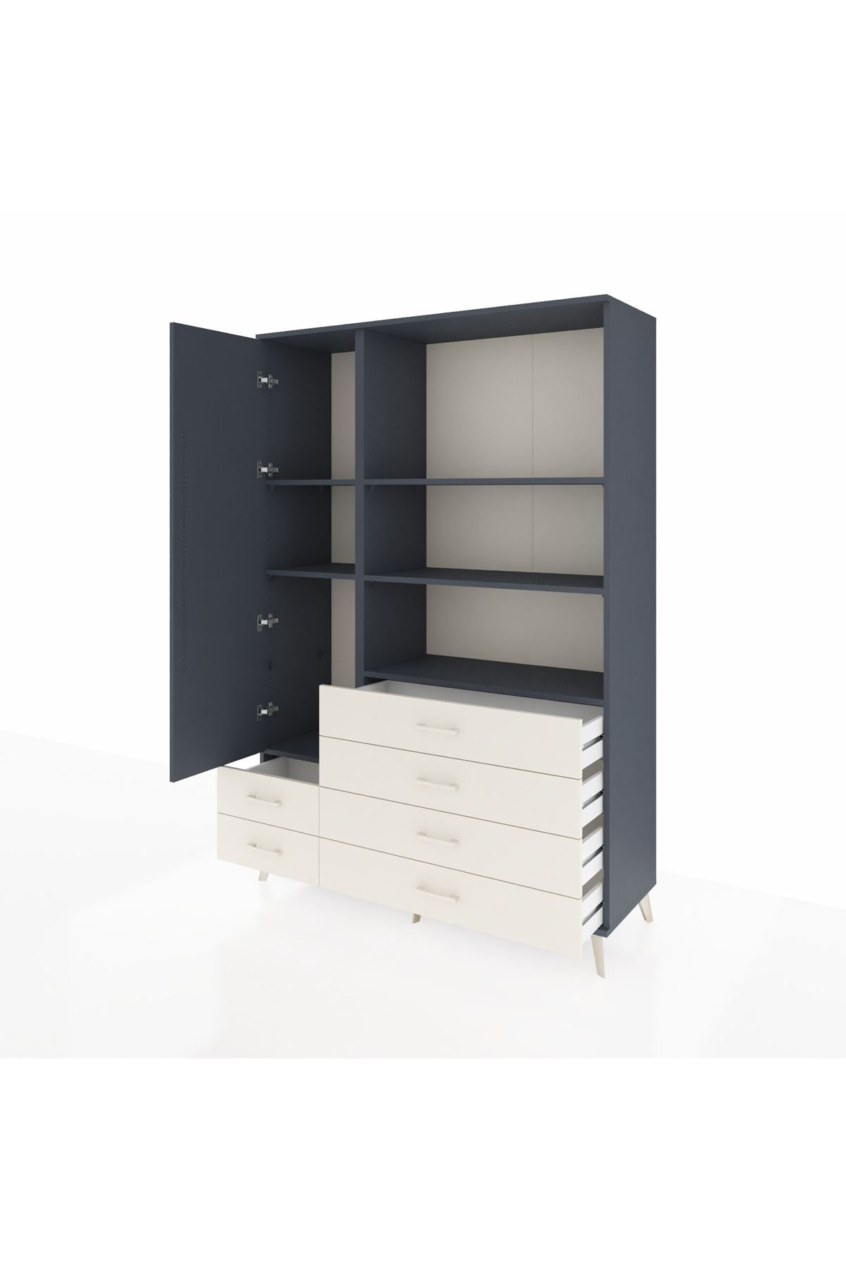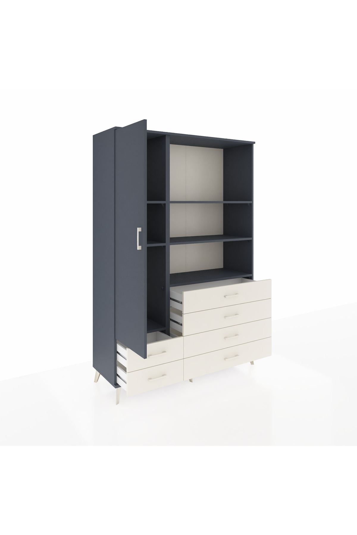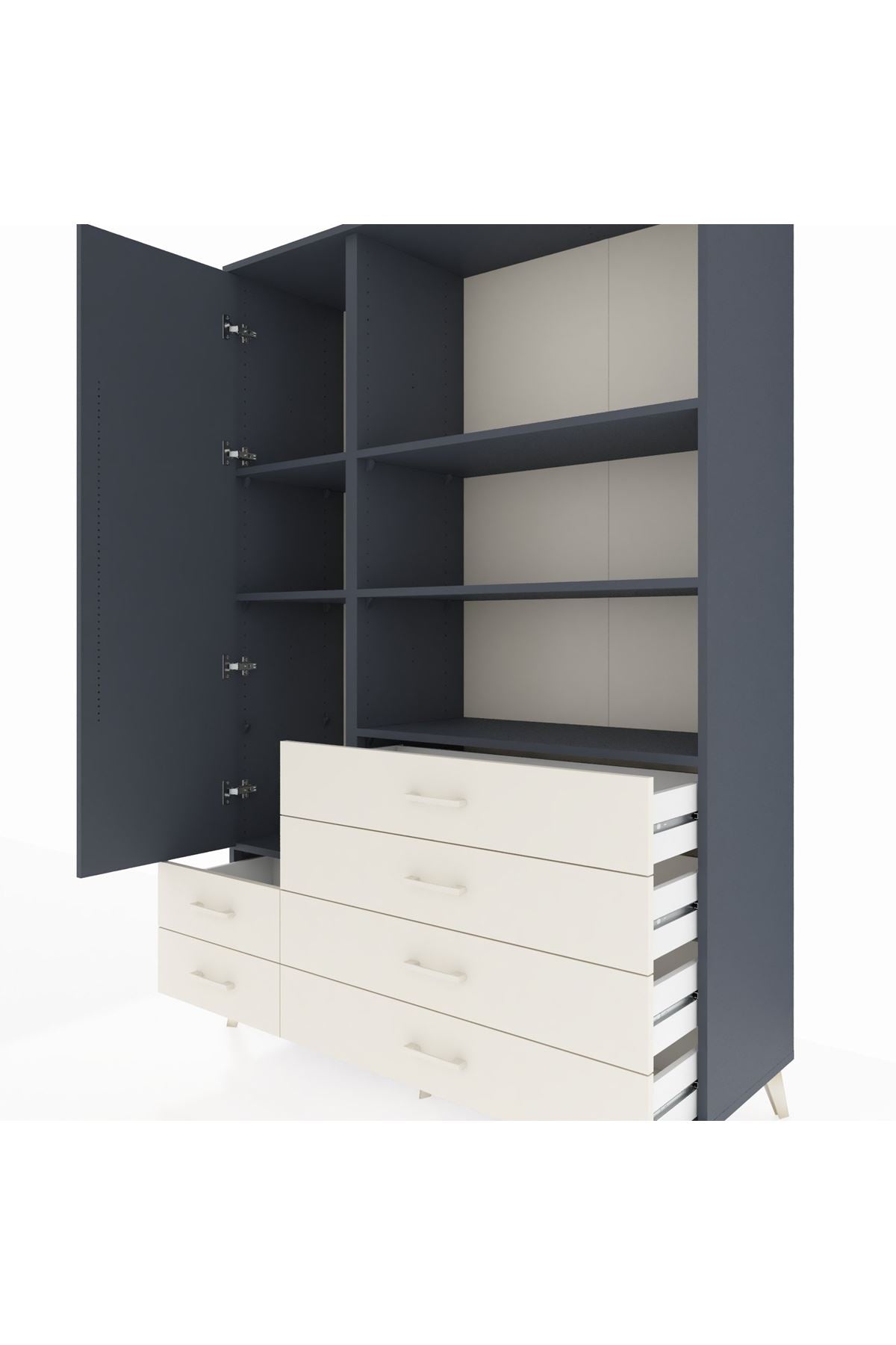 Hyperion Dolap 7 Raflı 6 Çekmeceli Tek Kapaklı 132x44x195 Antrasit-Antrasit/Aytaşı