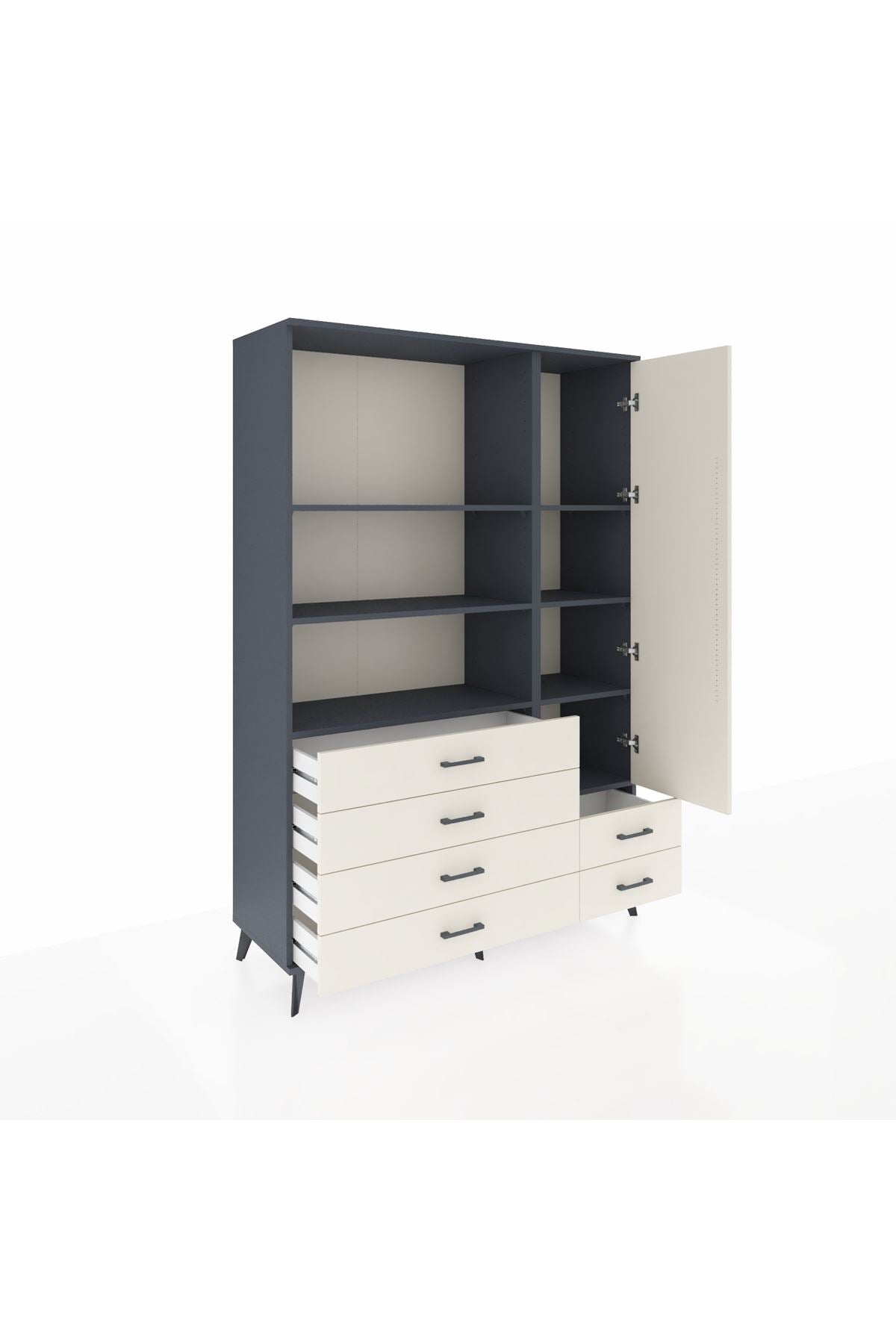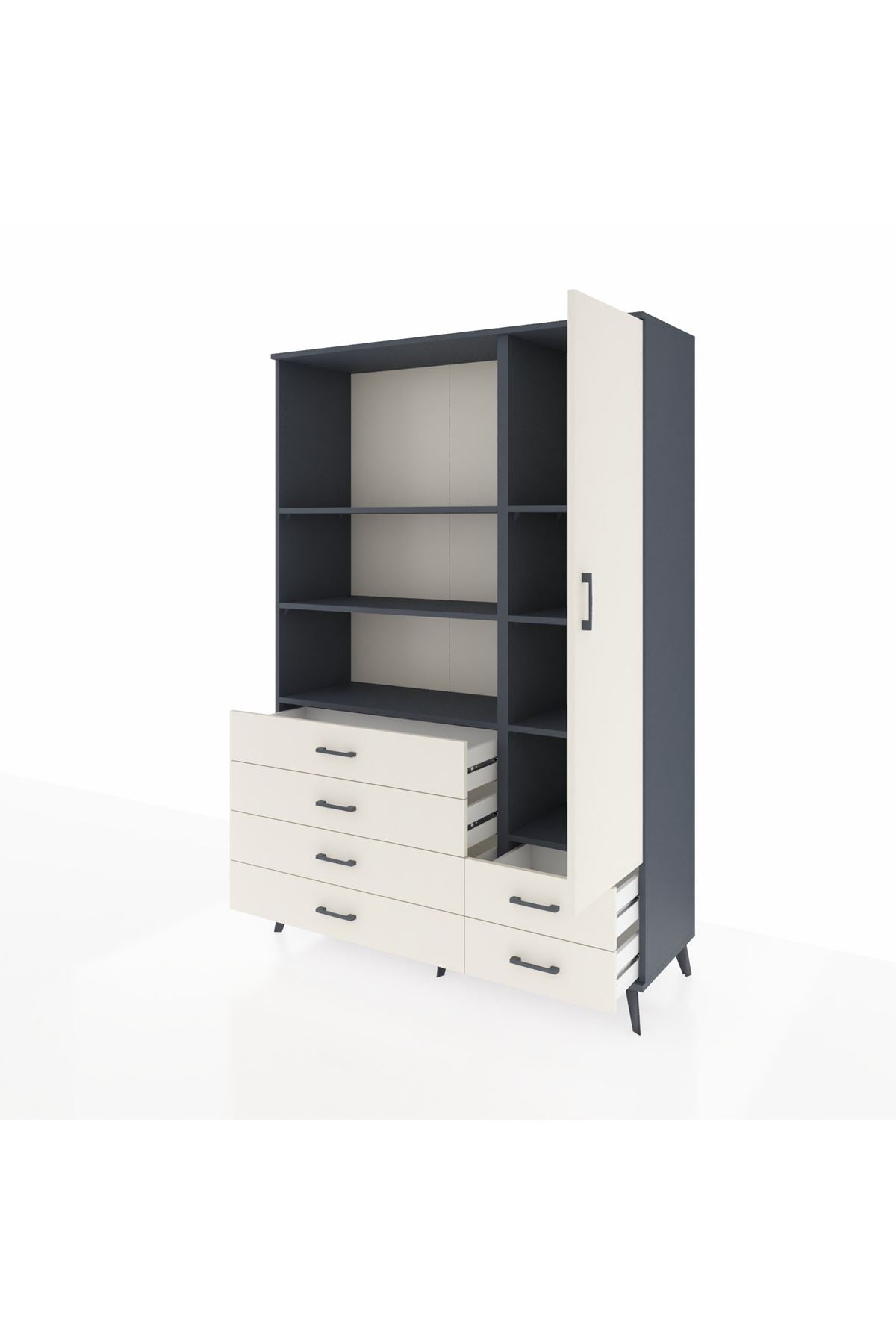 Hyperion Dolap 7 Raflı 6 Çekmeceli Tek Kapaklı 132x44x195 Antrasit-Aytaşı/Aytaşı