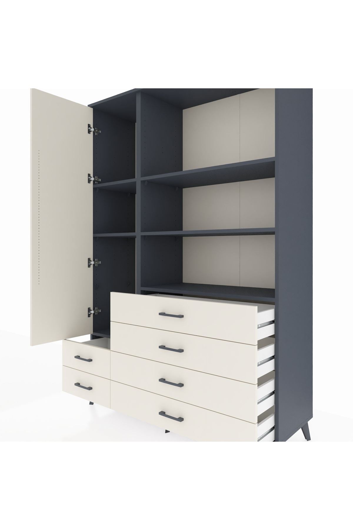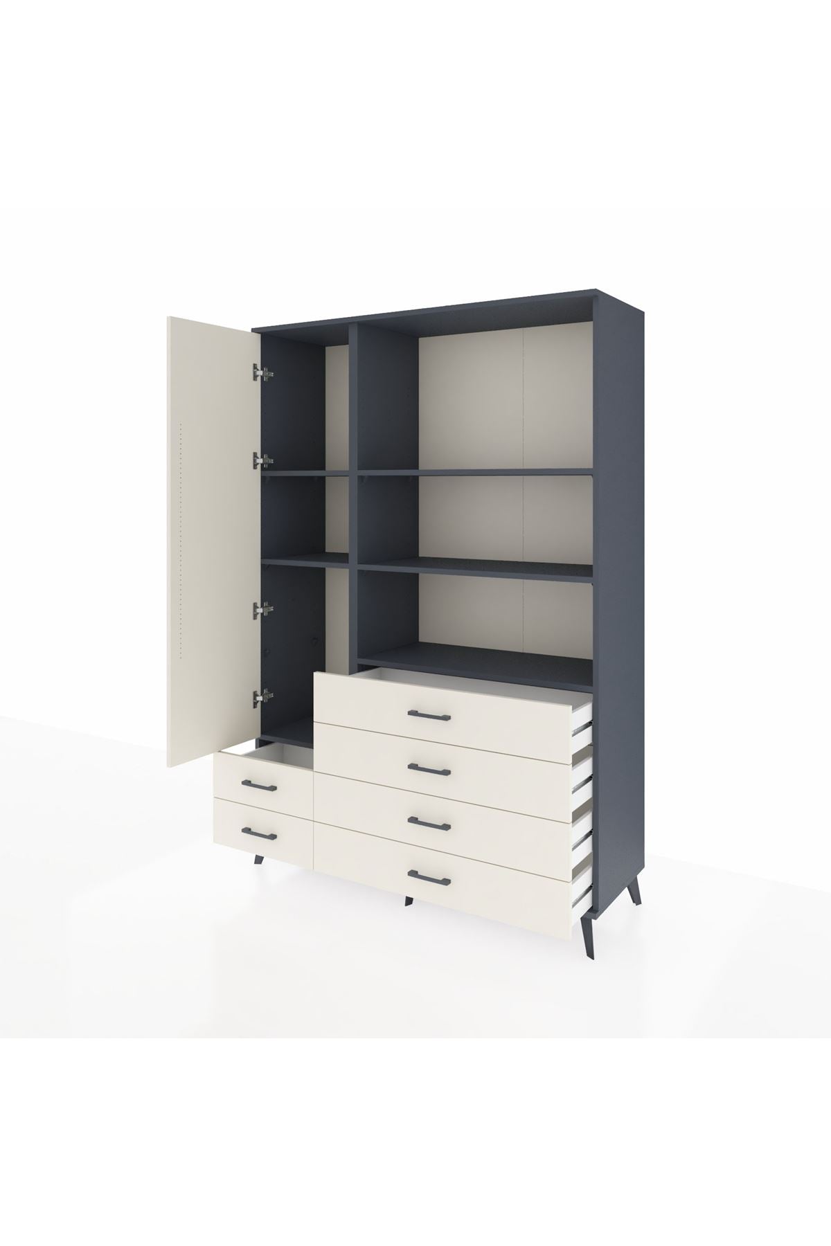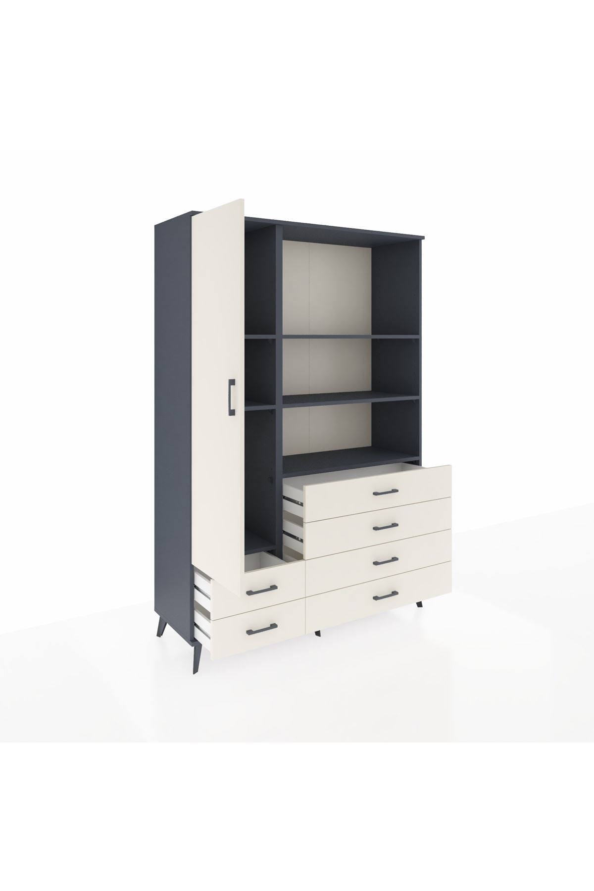 Hyperion Dolap 7 Raflı 6 Çekmeceli Tek Kapaklı 132x44x195 Antrasit-Aytaşı/Aytaşı