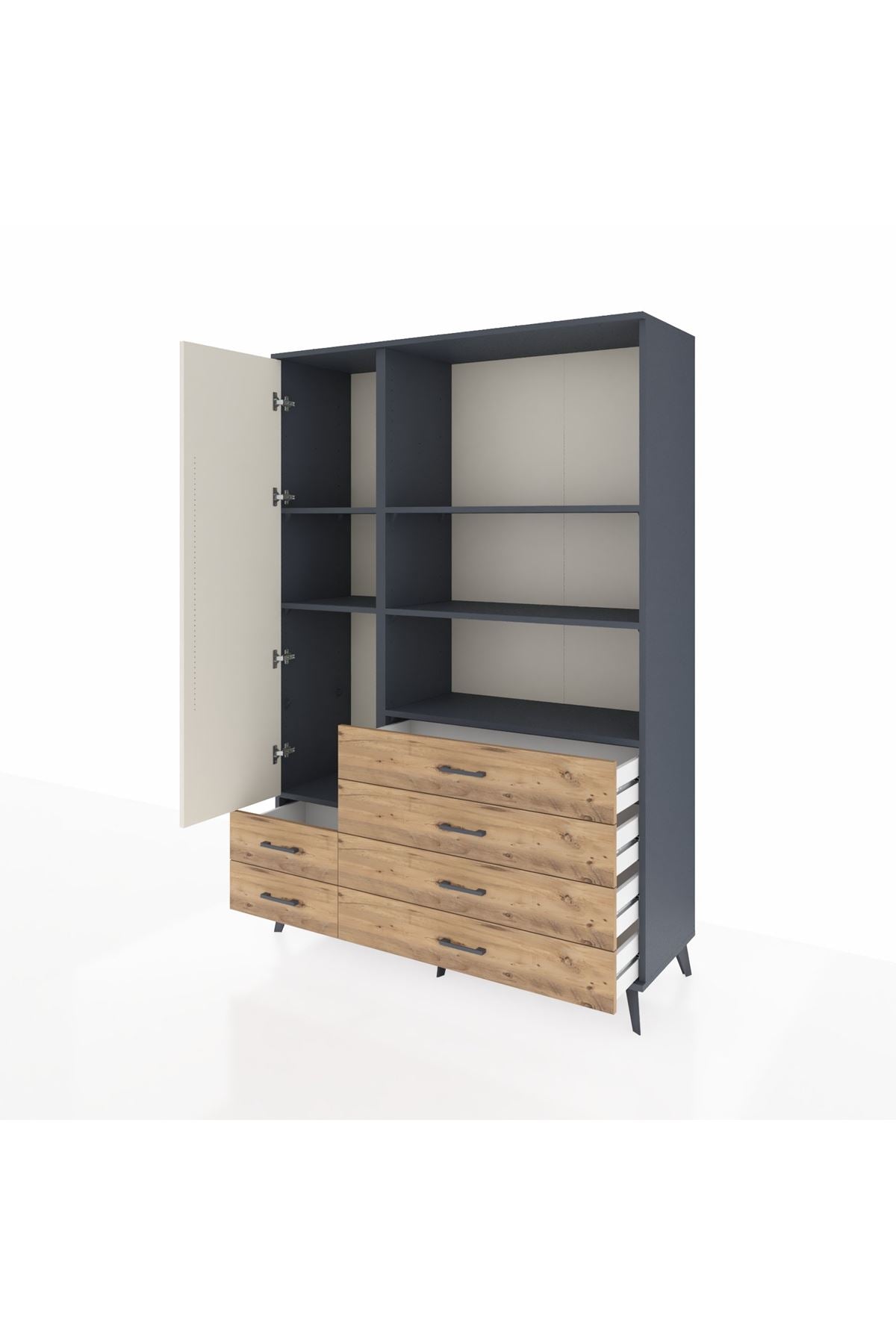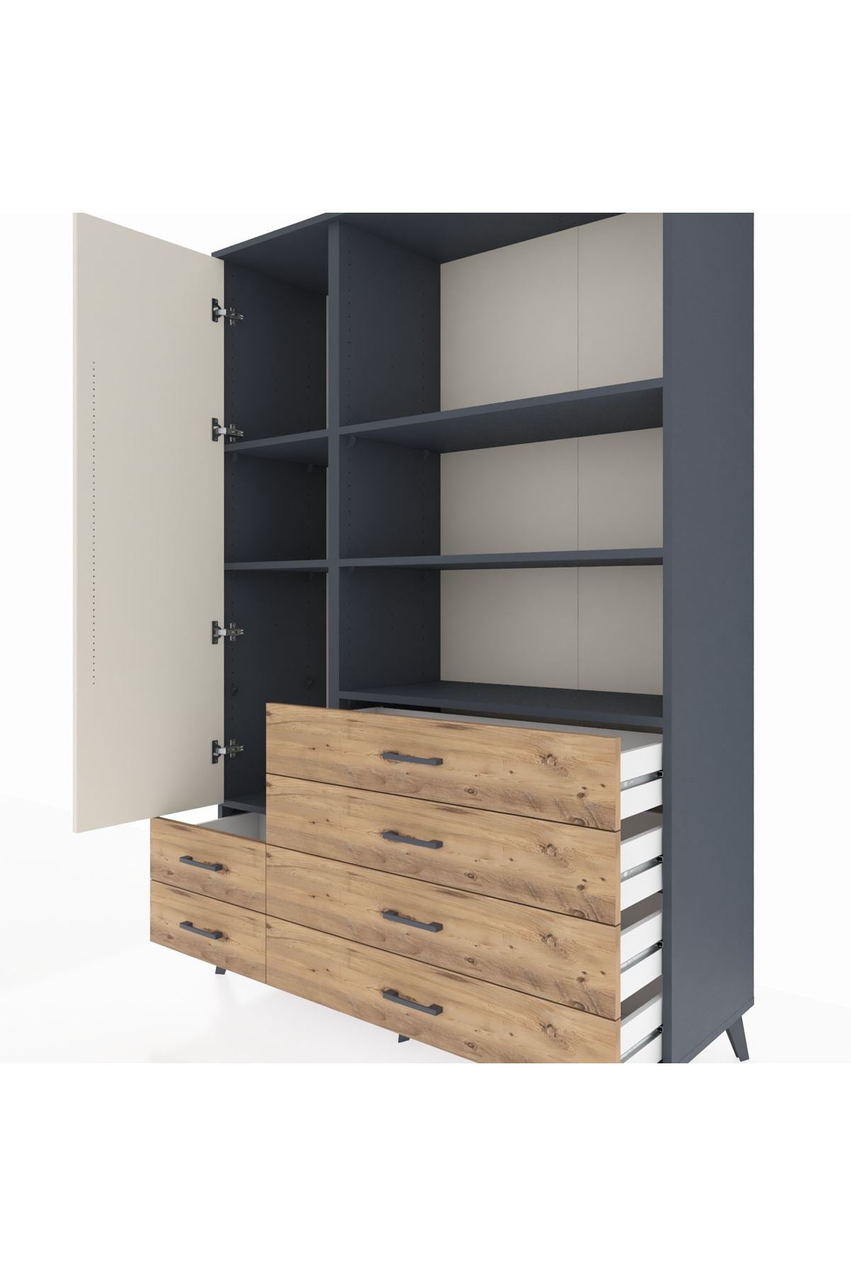 Hyperion Dolap 7 Raflı 6 Çekmeceli Tek Kapaklı 132x44x195 Antrasit-Aytaşı/Çam