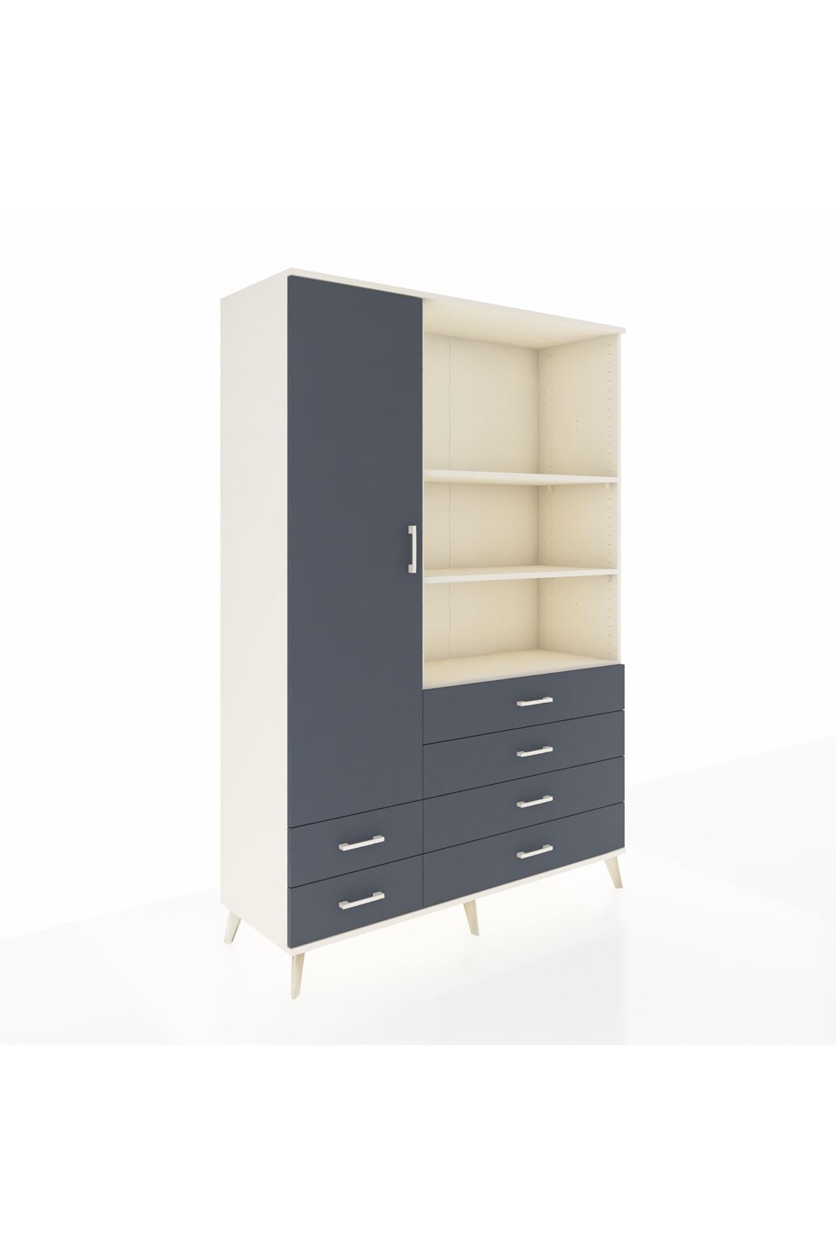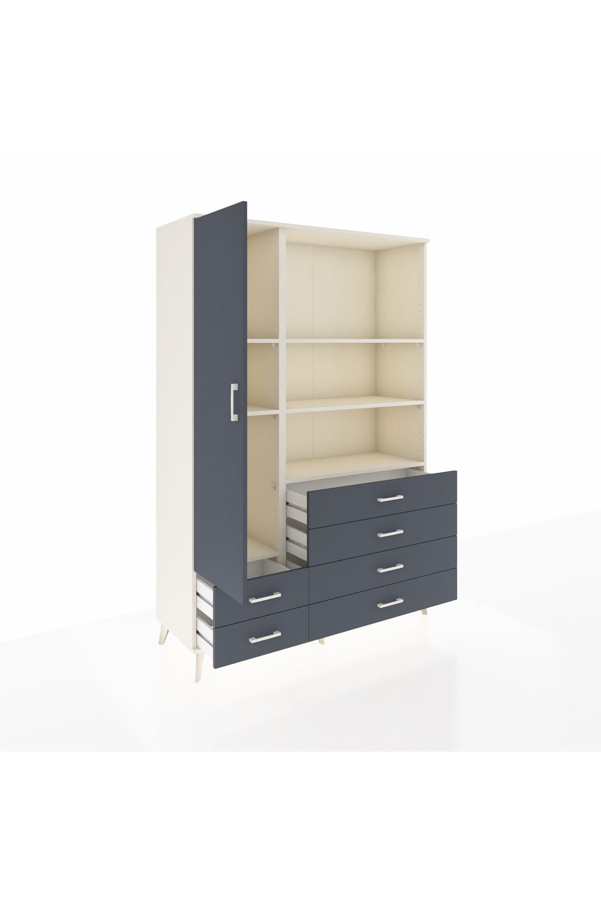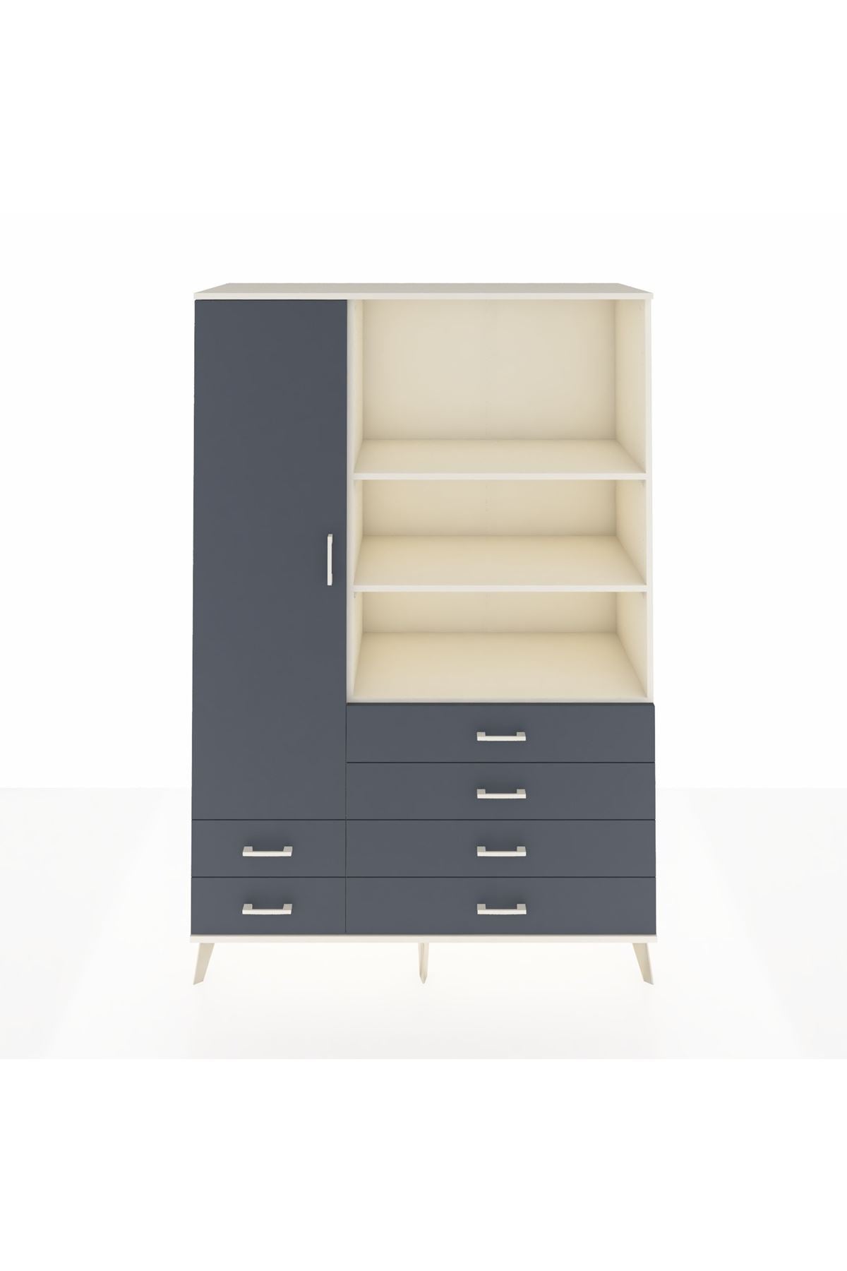 Hyperion Dolap 7 Raflı 6 Çekmeceli Tek Kapaklı 132x44x195 Aytaşı-Antrasit/Antrasit
