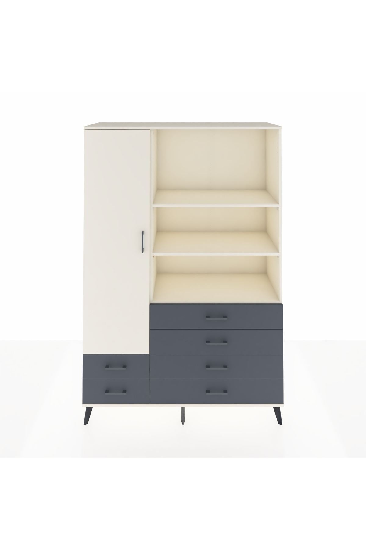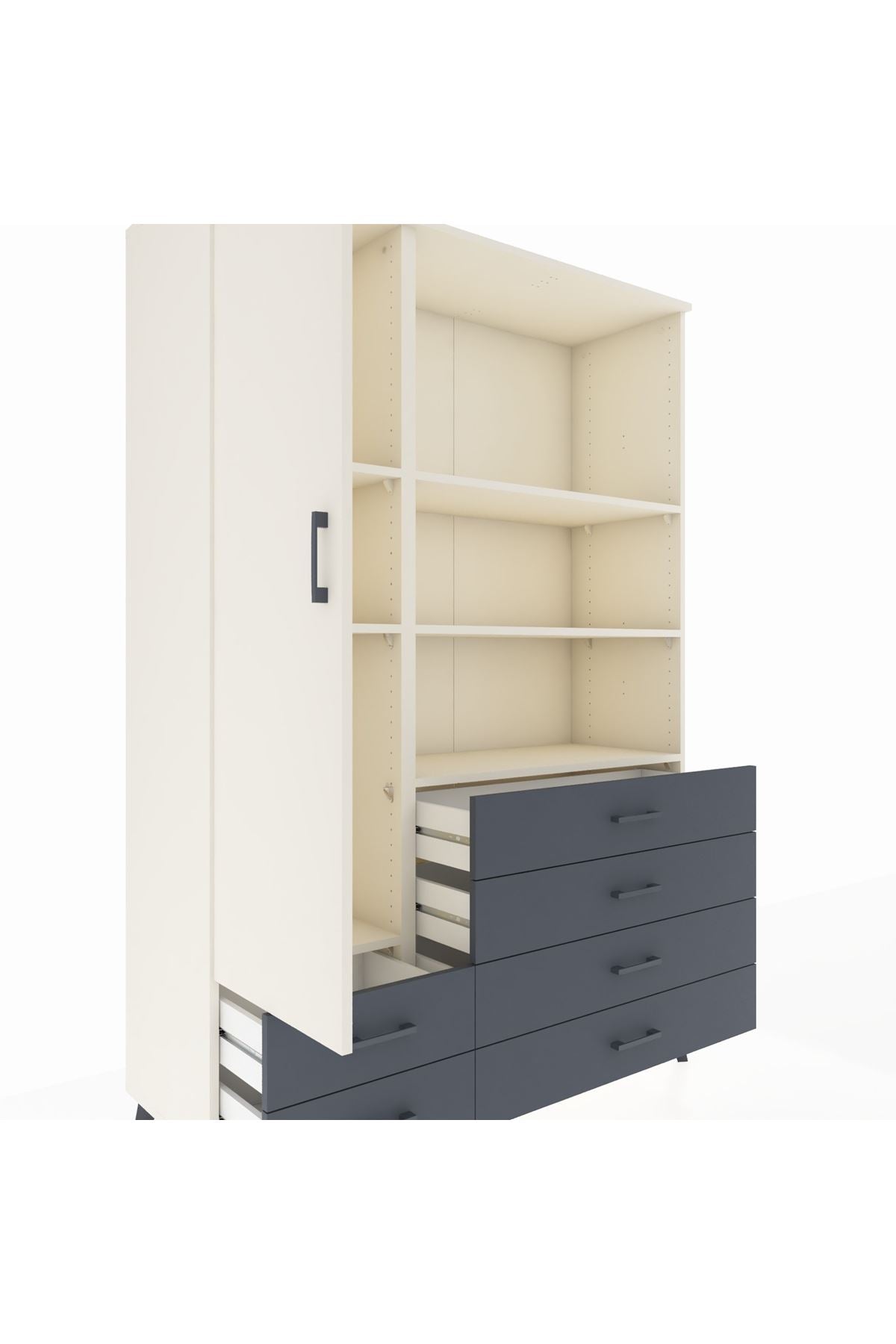 Hyperion Dolap 7 Raflı 6 Çekmeceli Tek Kapaklı 132x44x195 Aytaşı-Aytaşı/Antrasit