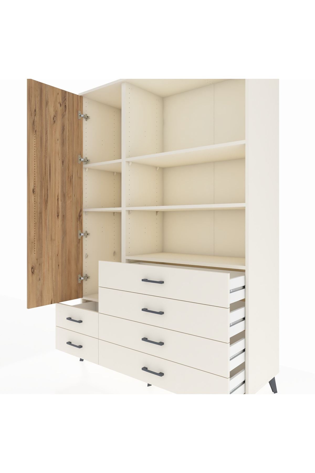 Hyperion Dolap 7 Raflı 6 Çekmeceli Tek Kapaklı 132x44x195 Aytaşı-Çam/Aytaşı