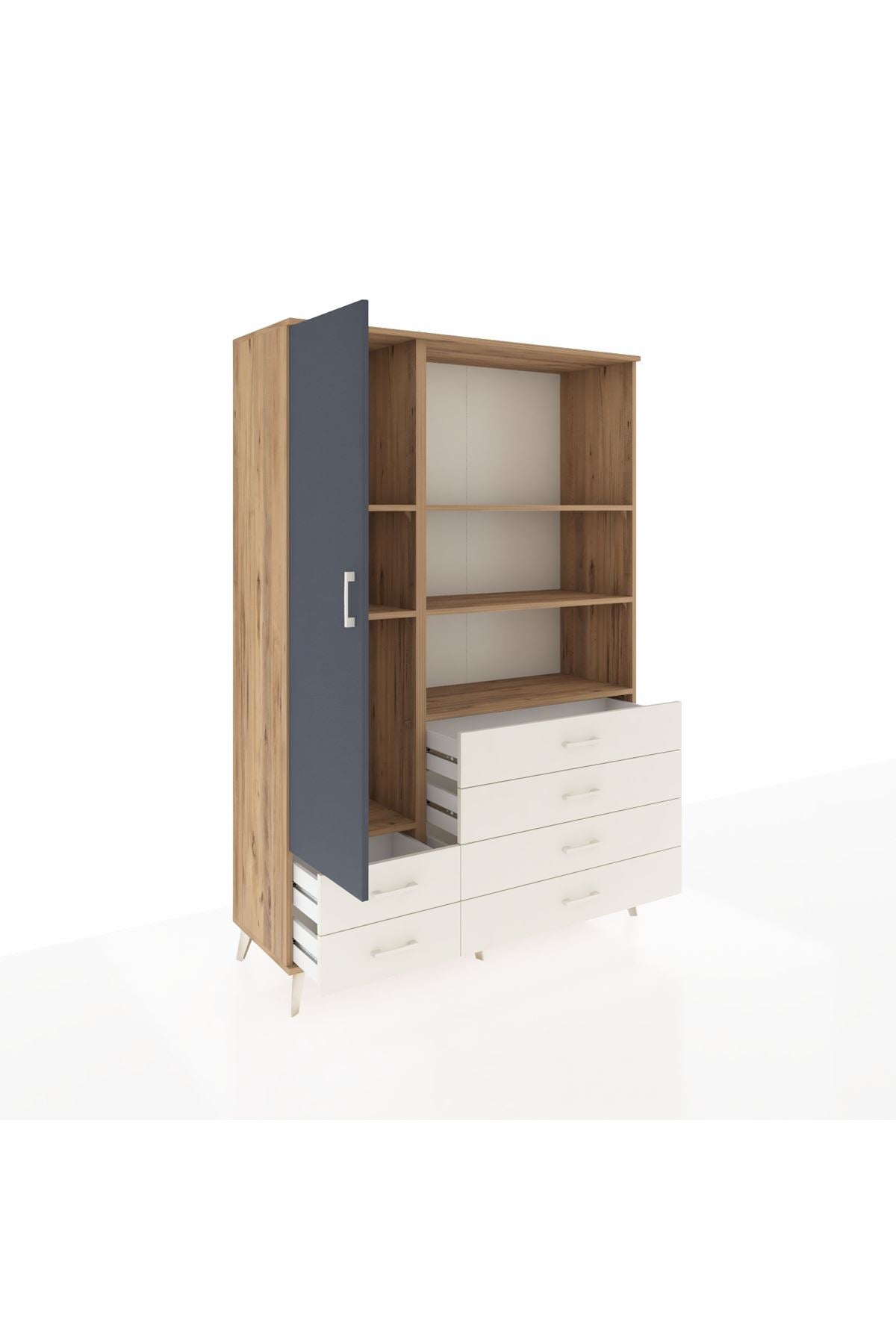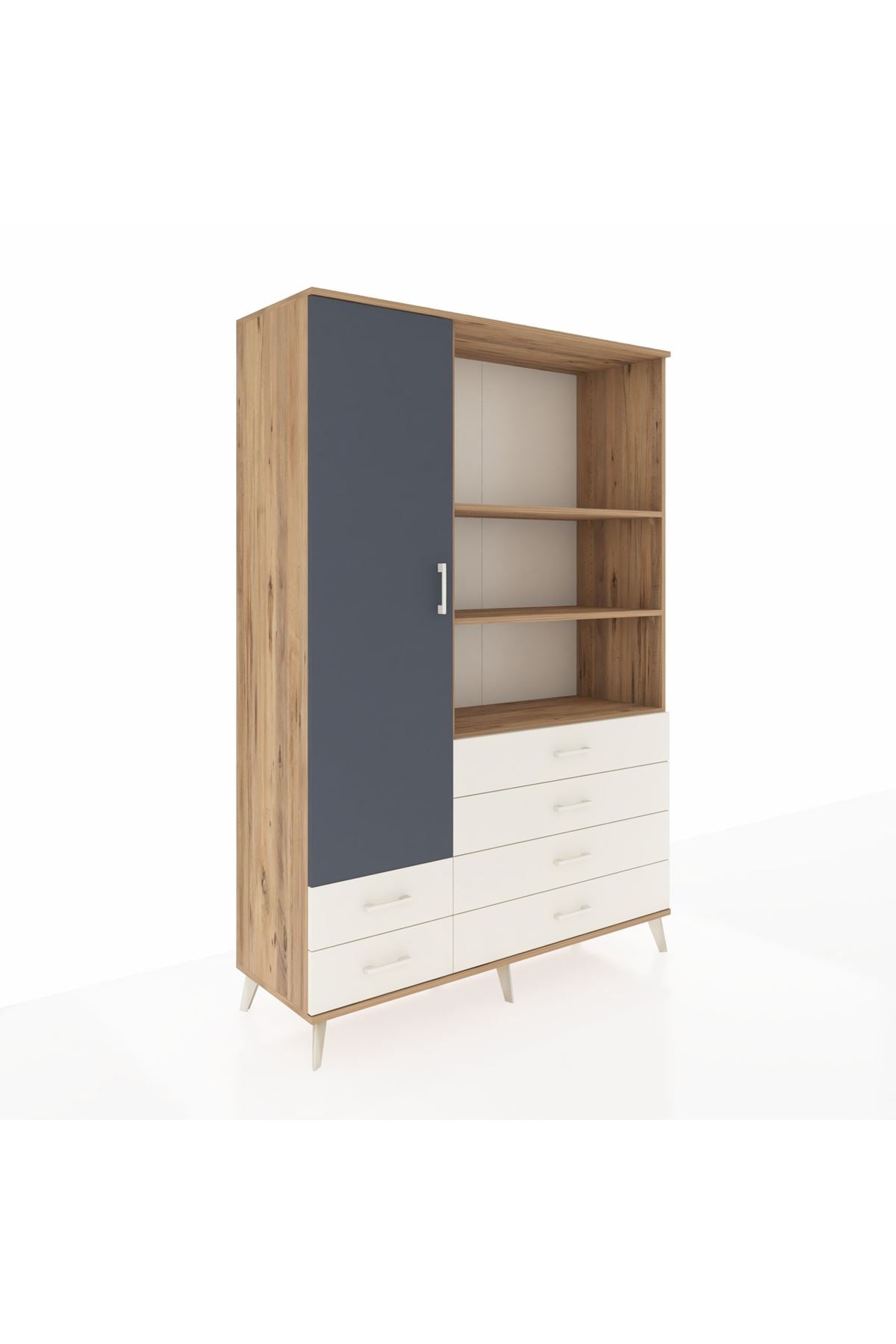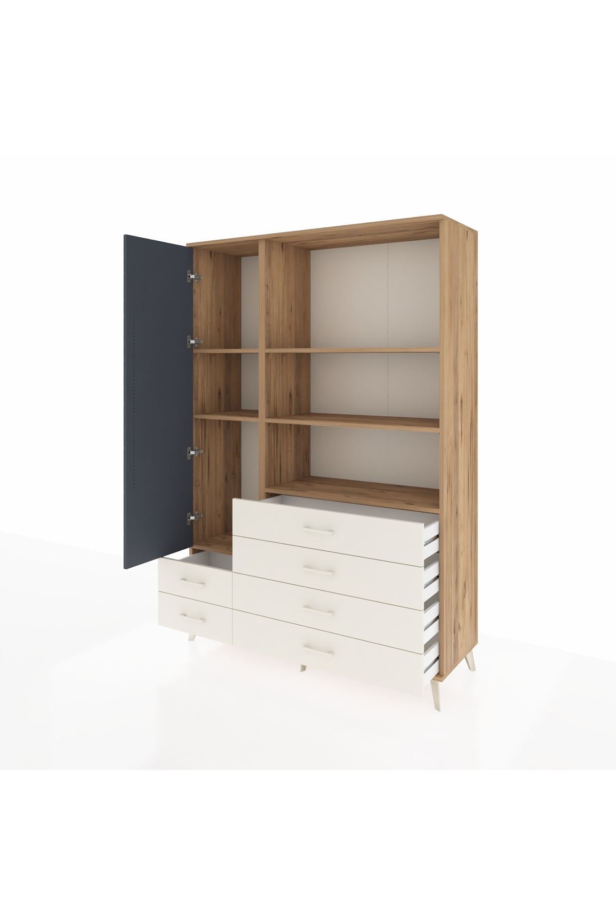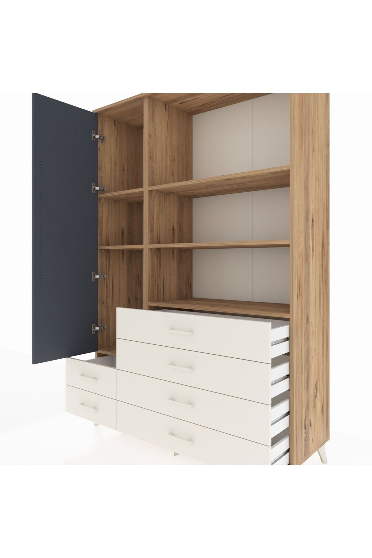 Hyperion Dolap 7 Raflı 6 Çekmeceli Tek Kapaklı 132x44x195 Çam-Antrasit/Aytaşı
