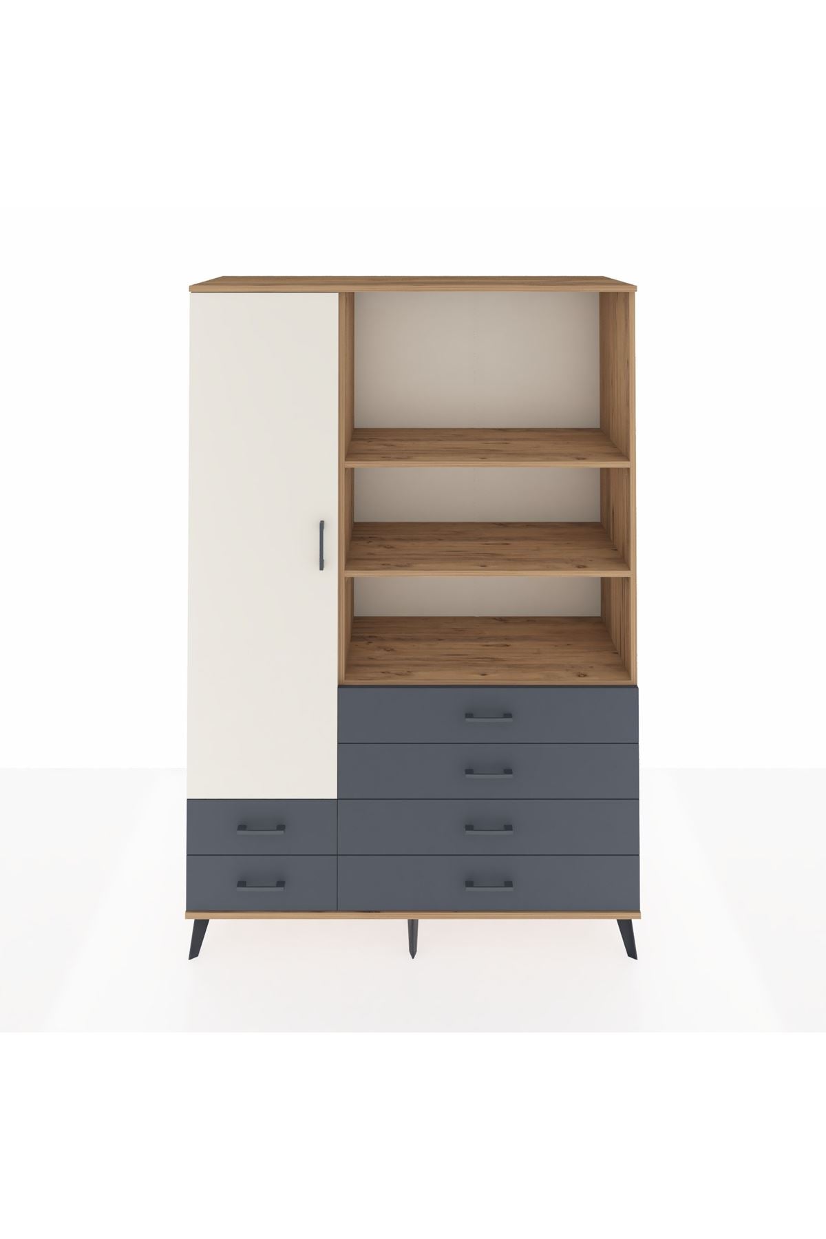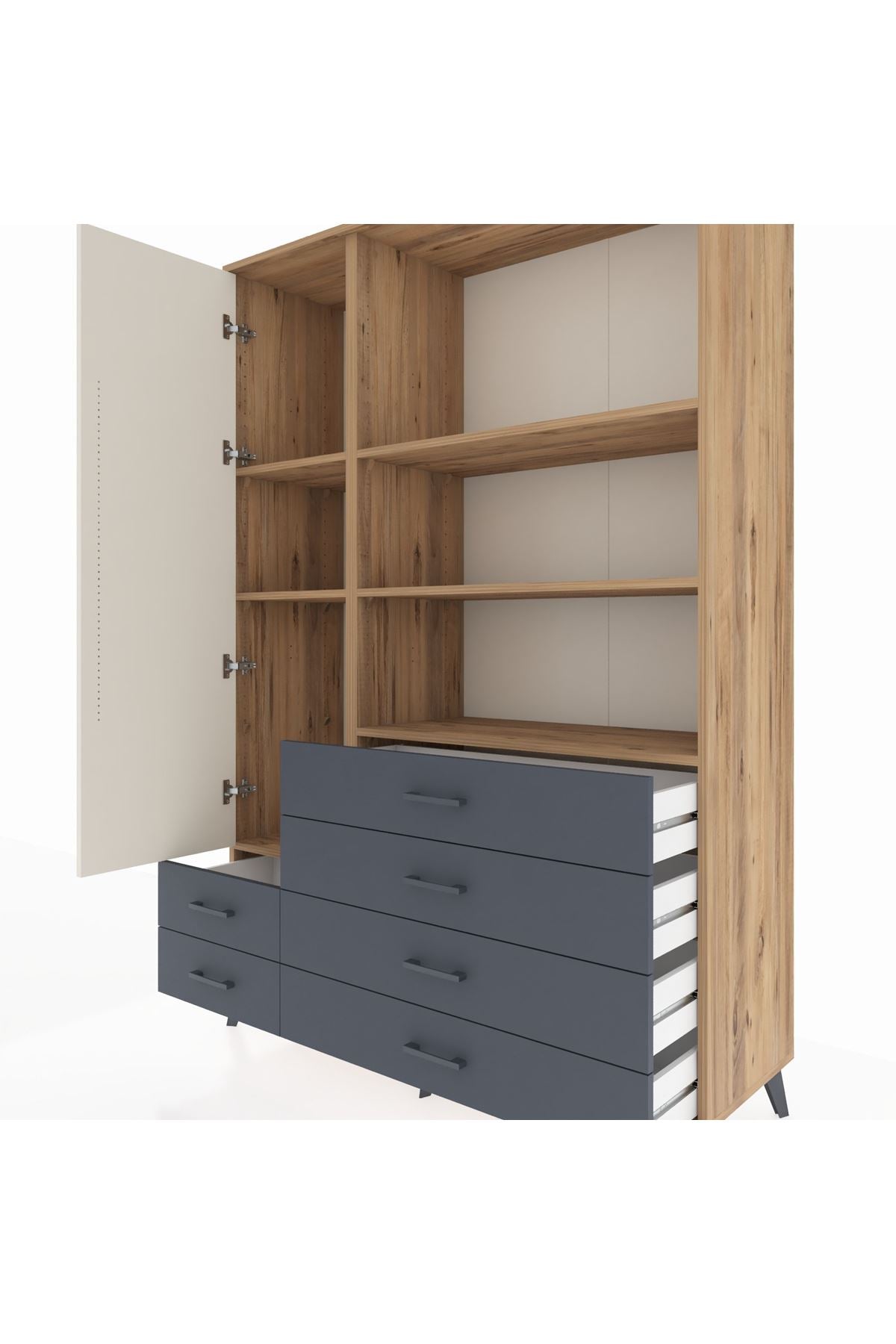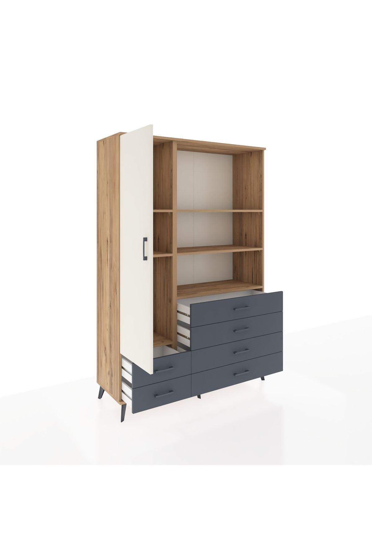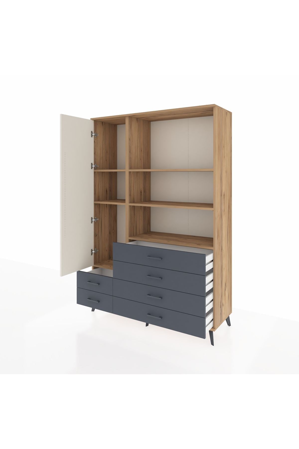 Hyperion Dolap 7 Raflı 6 Çekmeceli Tek Kapaklı 132x44x195 Çam-Aytaşı/Antrasit
