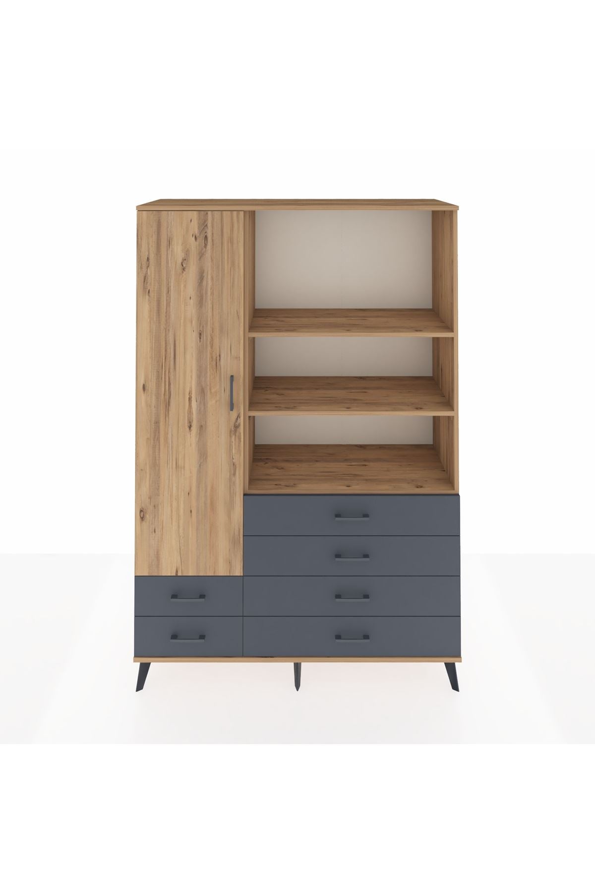 Hyperion Dolap 7 Raflı 6 Çekmeceli Tek Kapaklı 132x44x195 Çam-Çam/Antrasit