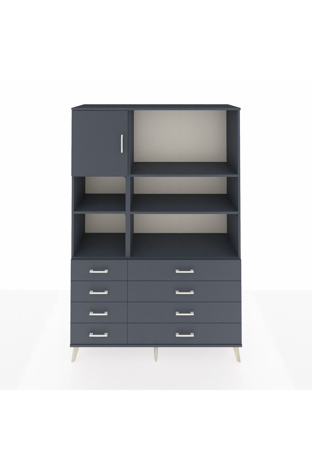 Hyperion Dolap 7 Raflı 8 Çekmeceli Tek Kapaklı 132x44x195 Antrasit-Antrasit/Antrasit