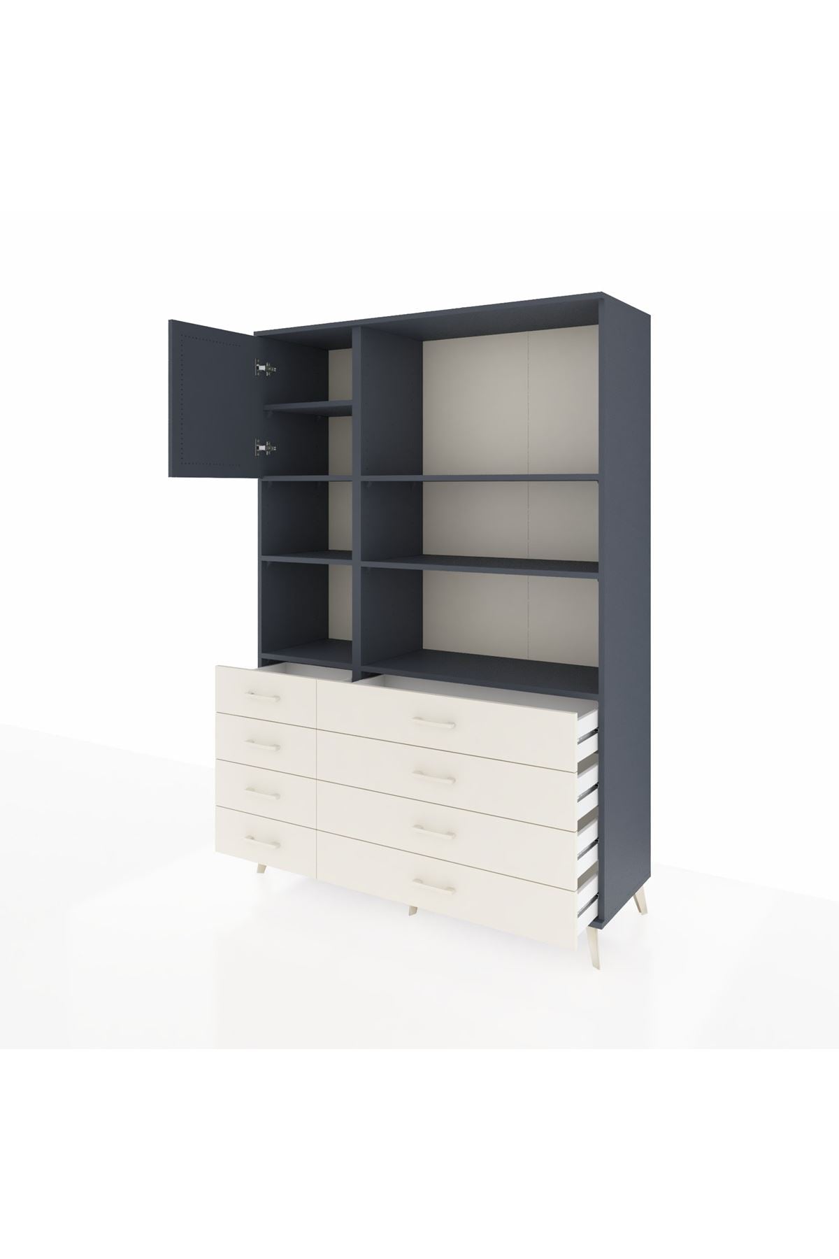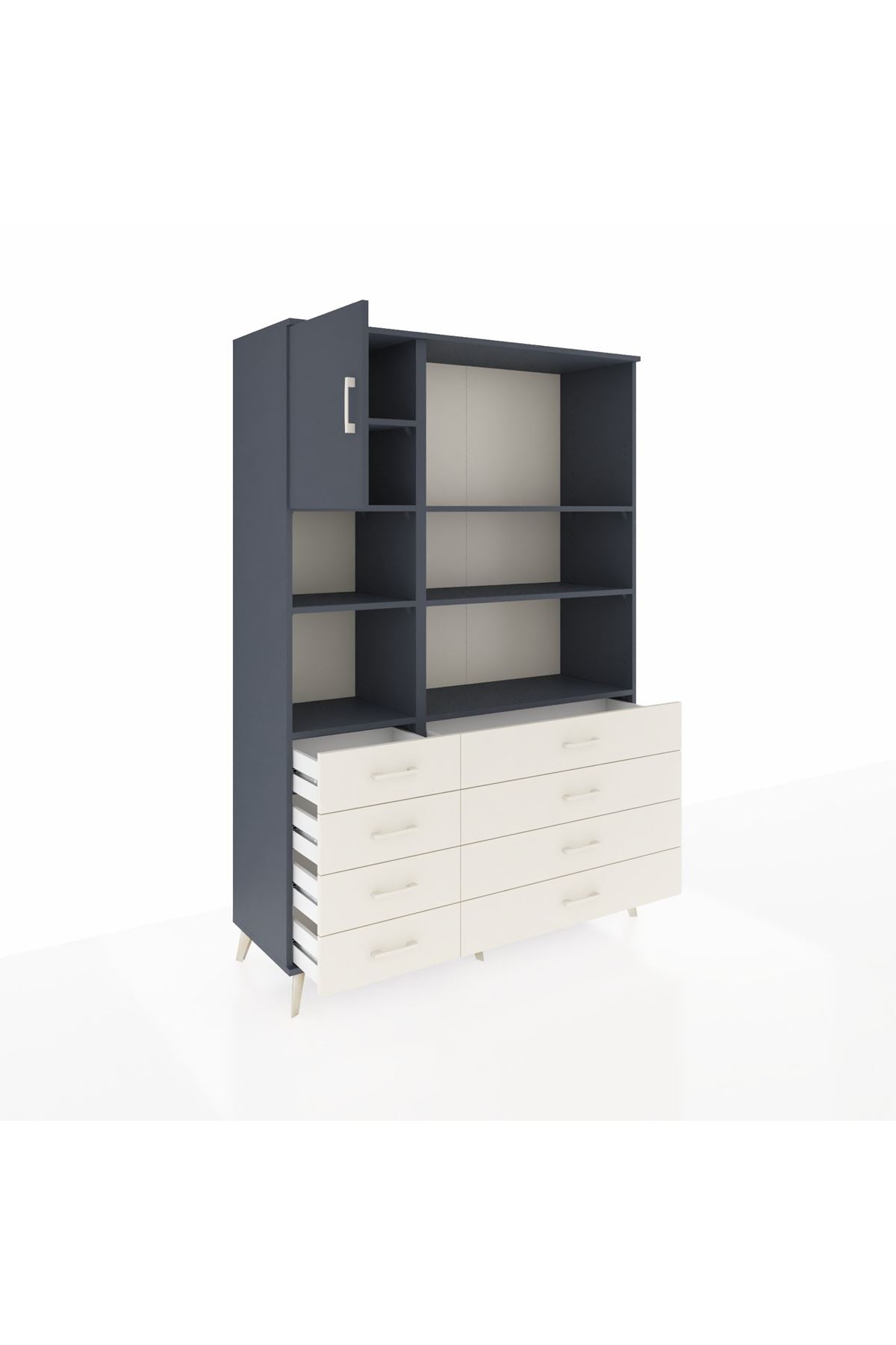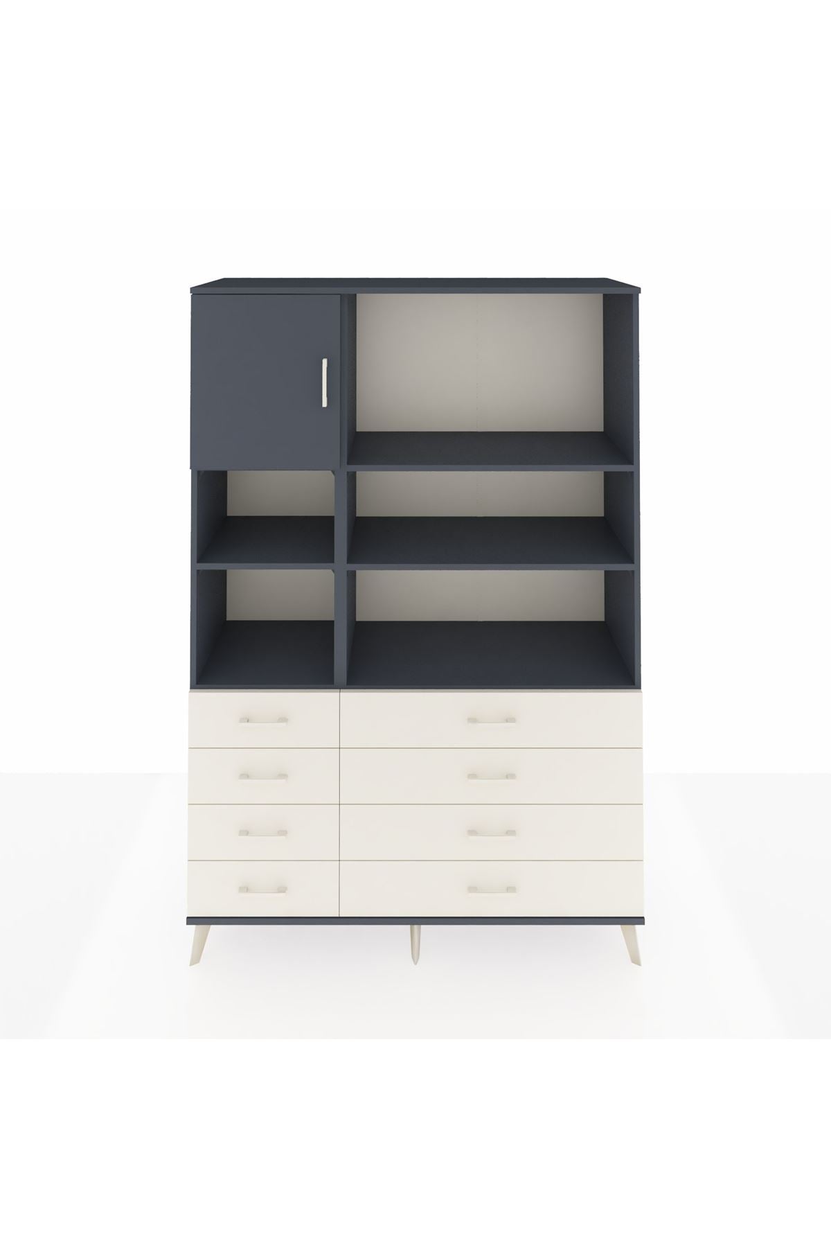 Hyperion Dolap 7 Raflı 8 Çekmeceli Tek Kapaklı 132x44x195 Antrasit-Antrasit/Aytaşı