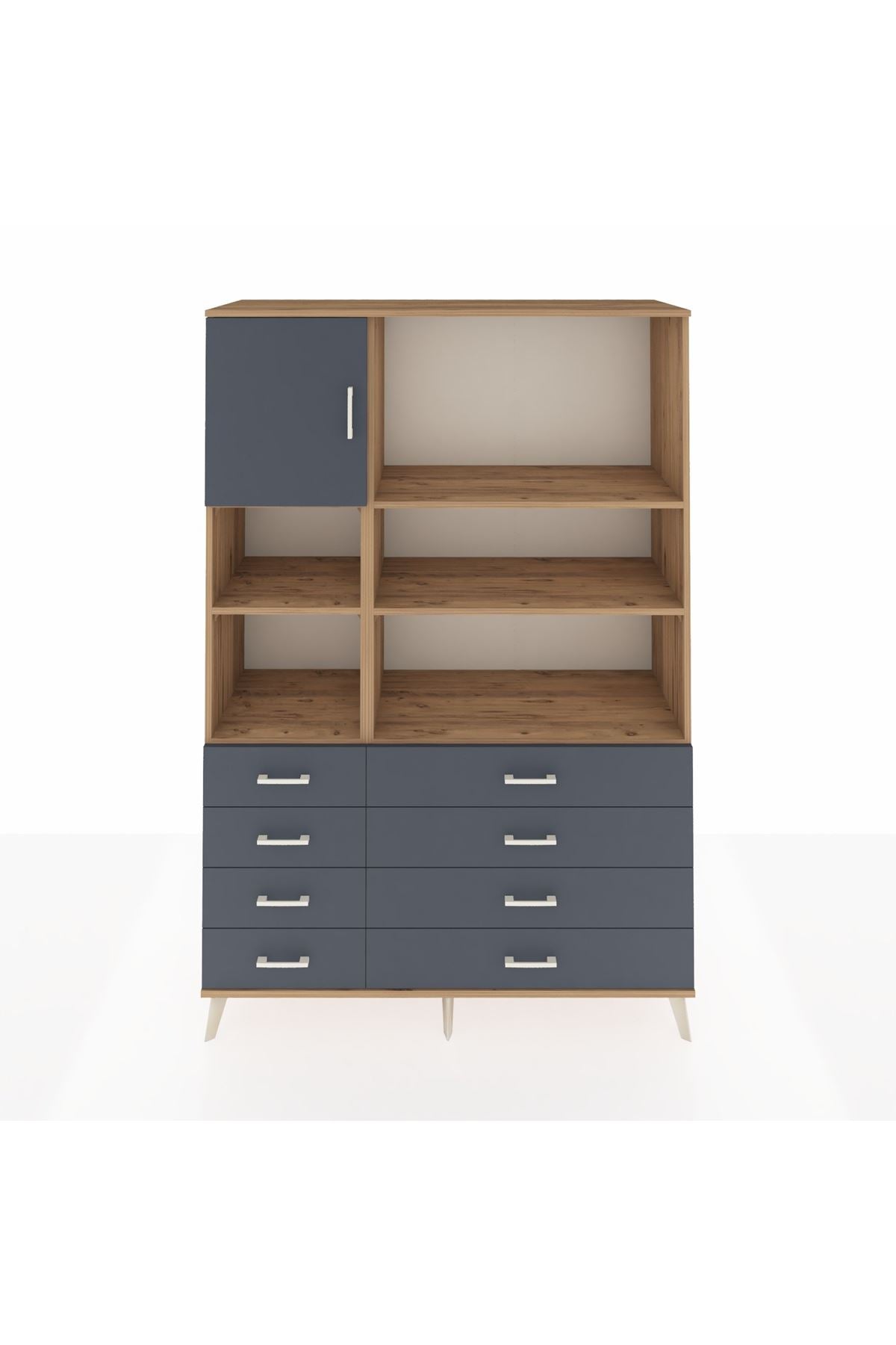 Hyperion Dolap 7 Raflı 8 Çekmeceli Tek Kapaklı 132x44x195 Çam-Antrasit/Antrasit