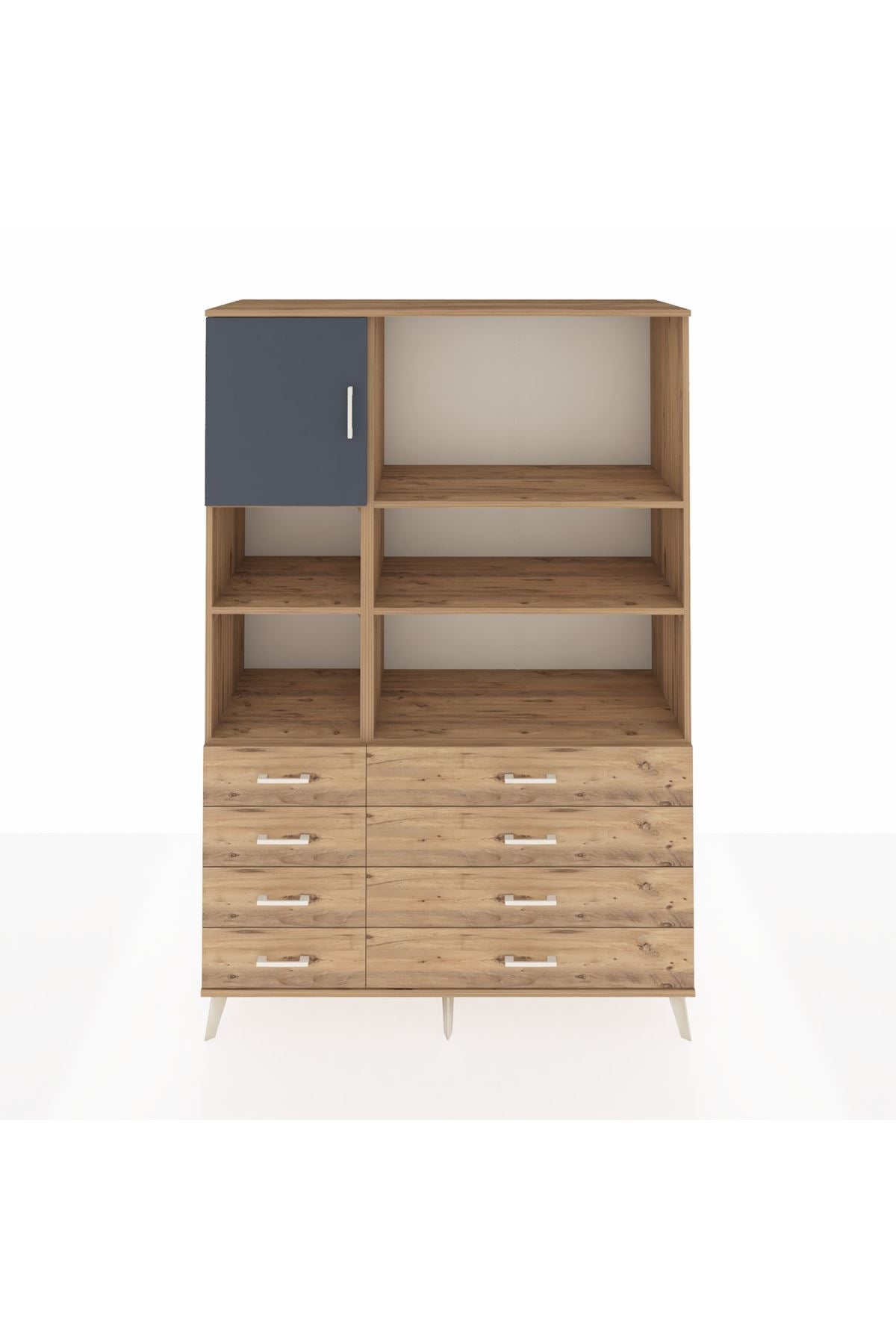Hyperion Dolap 7 Raflı 8 Çekmeceli Tek Kapaklı 132x44x195 Çam-Antrasit/Çam
