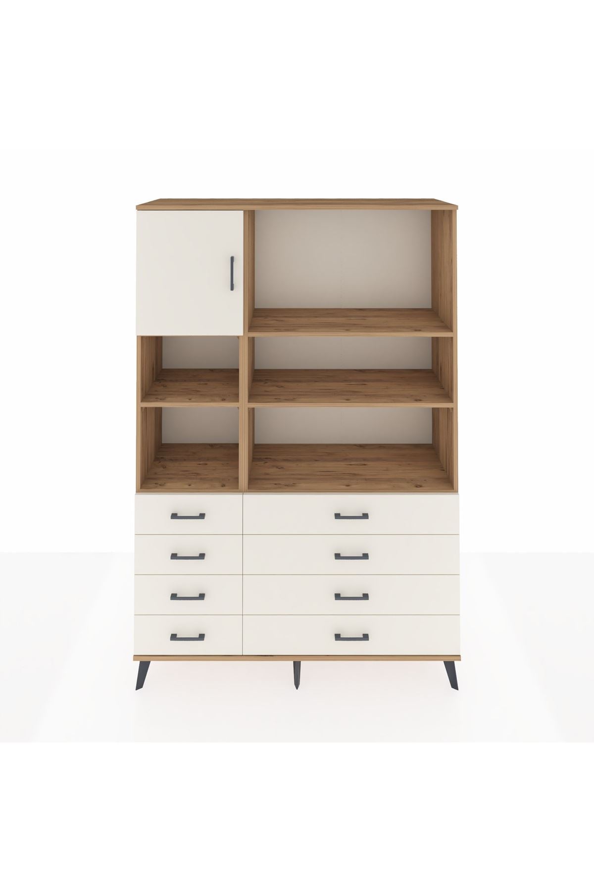 Hyperion Dolap 7 Raflı 8 Çekmeceli Tek Kapaklı 132x44x195 Çam-Aytaşı/Aytaşı