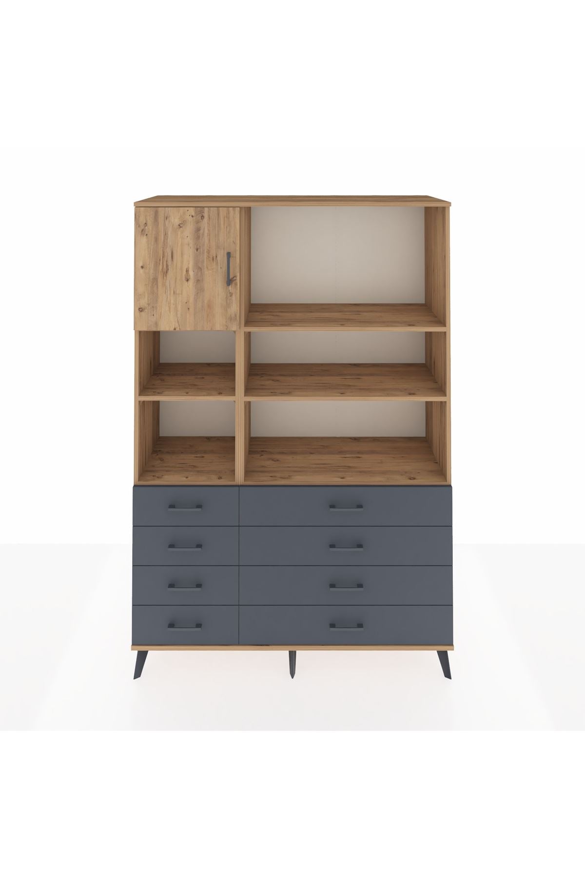 Hyperion Dolap 7 Raflı 8 Çekmeceli Tek Kapaklı 132x44x195 Çam-Çam/Antrasit