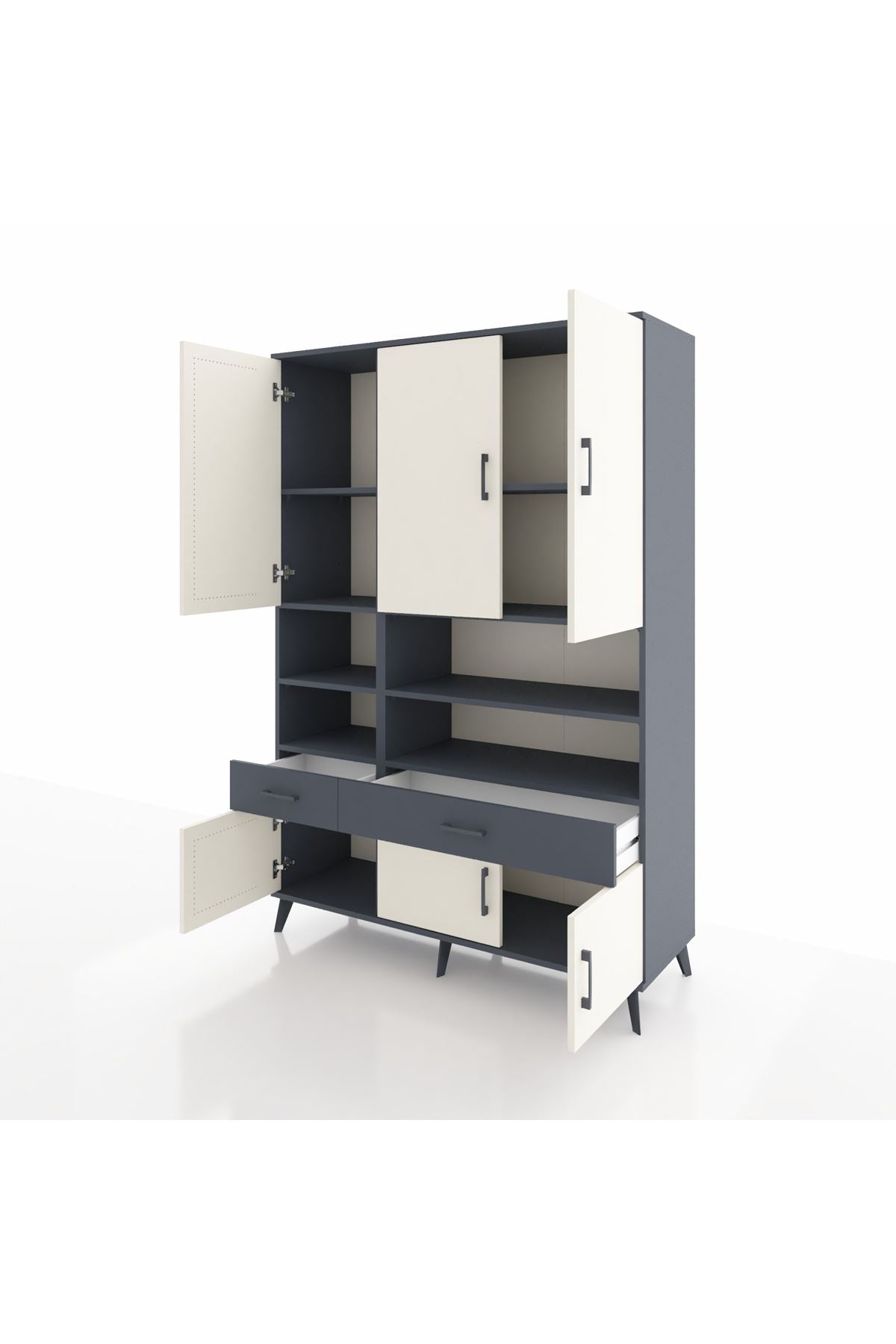 Hyperion Dolap 8 Raflı 2 Çekmeceli 6 Kapaklı 132x44x195 Antrasit-Aytaşı/Antrasit