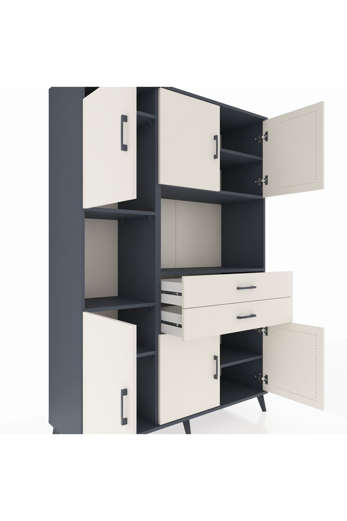 Hyperion Dolap 8 Raflı 2 Çekmeceli 6 Kapaklı 132x44x195 Antrasit-Aytaşı/Aytaşı