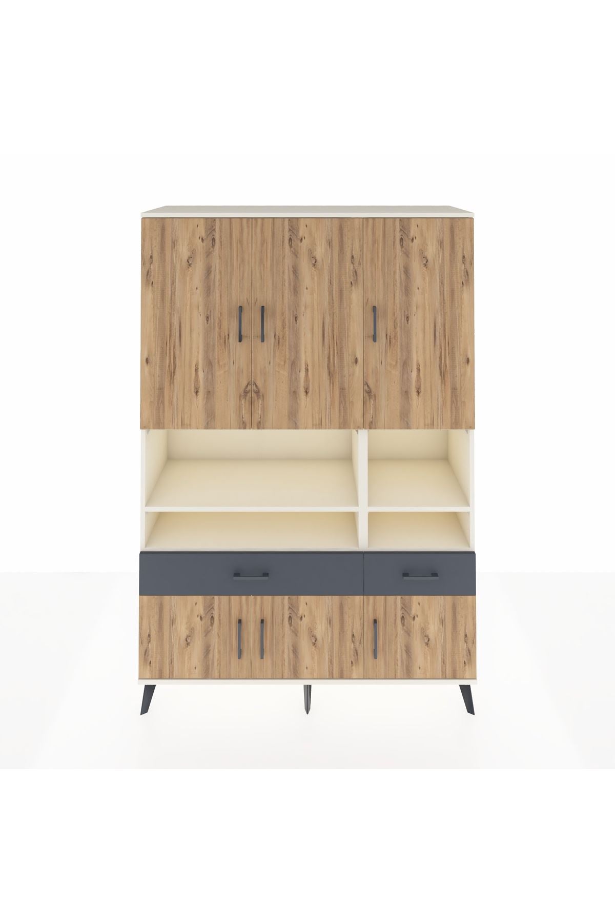 Hyperion Dolap 8 Raflı 2 Çekmeceli 6 Kapaklı 132x44x195 Aytaşı-Çam/Antrasit