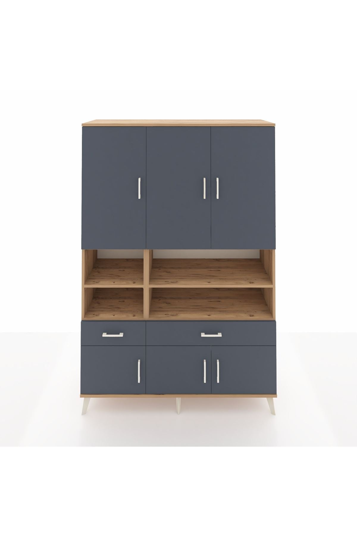 Hyperion Dolap 8 Raflı 2 Çekmeceli 6 Kapaklı 132x44x195 Çam-Antrasit/Antrasit