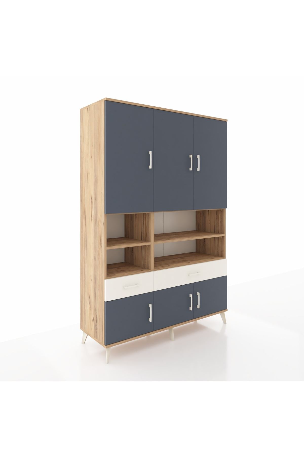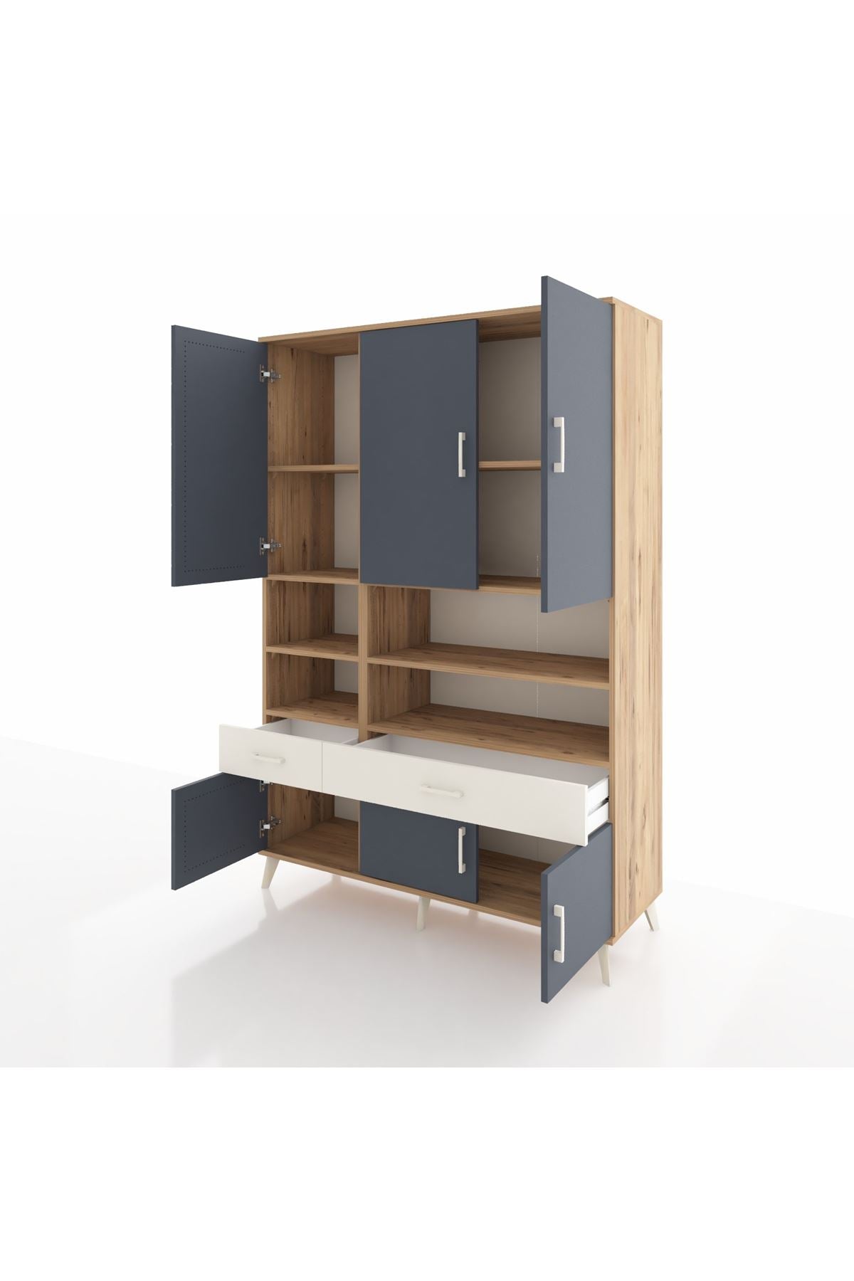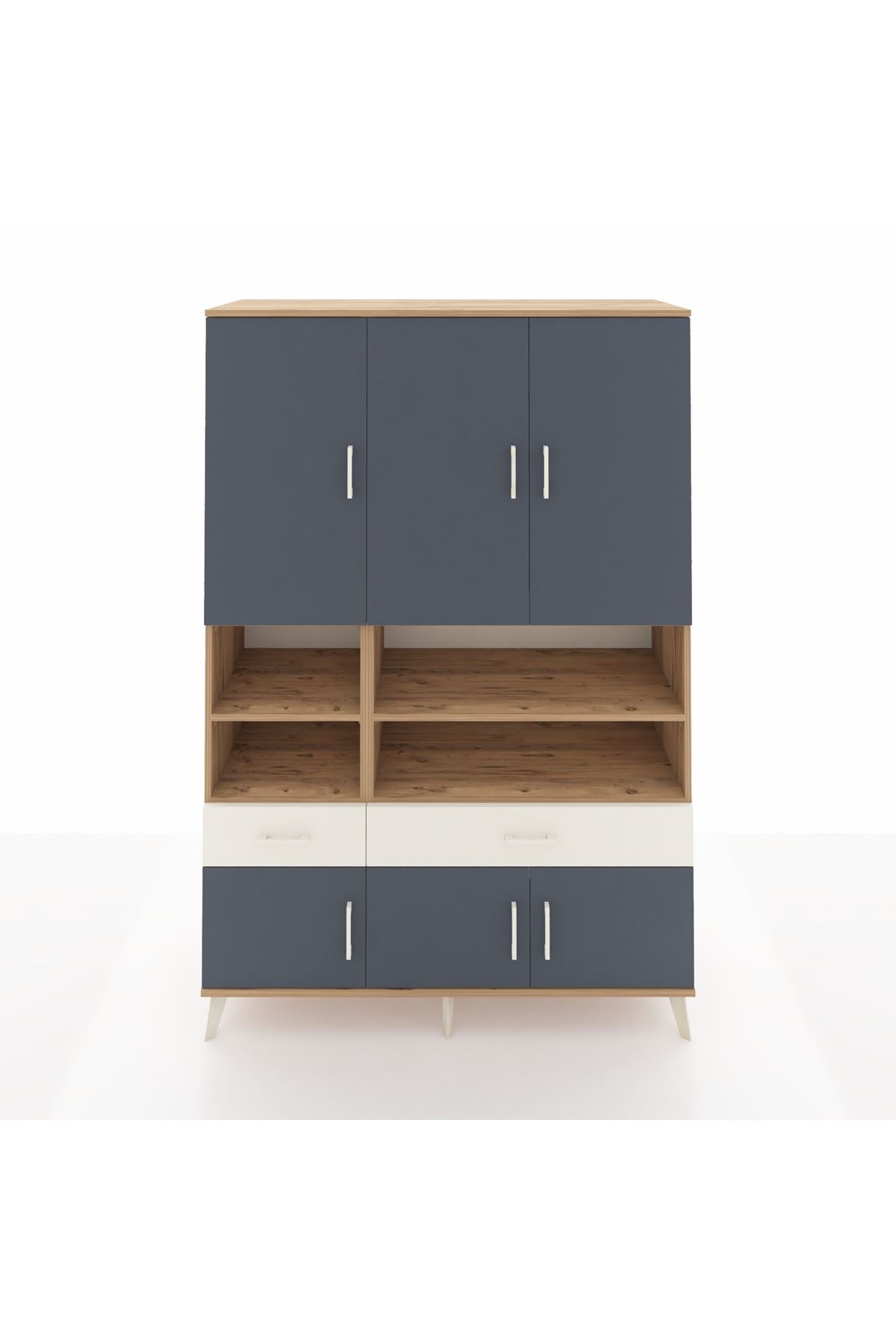 Hyperion Dolap 8 Raflı 2 Çekmeceli 6 Kapaklı 132x44x195 Çam-Antrasit/Aytaşı