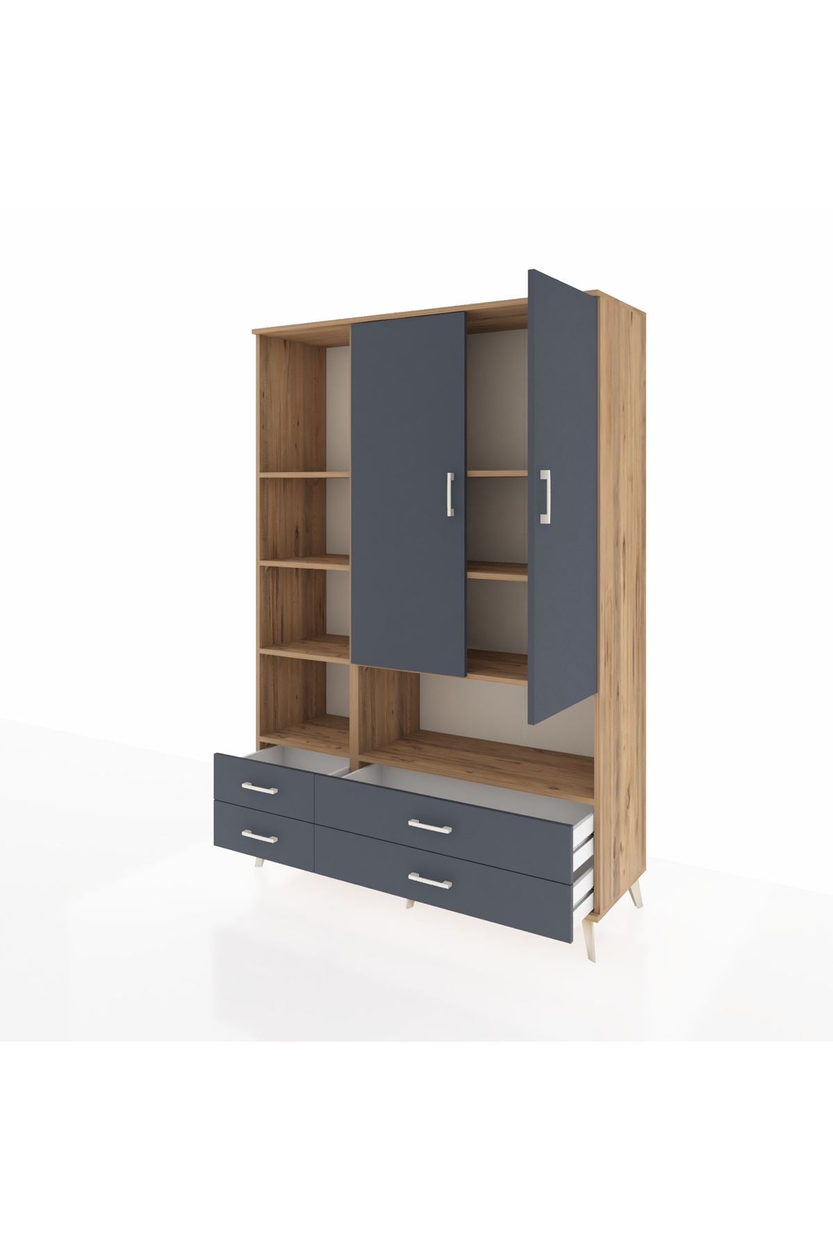 Hyperion Dolap 8 Raflı 4 Çekmeceli 2 Kapaklı 132x44x195 Çam-Antrasit/Antrasit