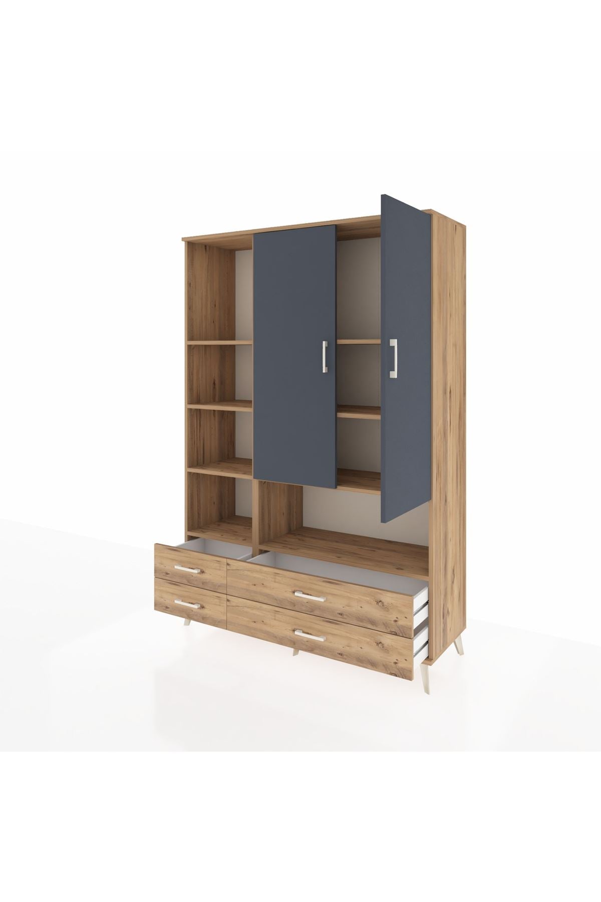 Hyperion Dolap 8 Raflı 4 Çekmeceli 2 Kapaklı 132x44x195 Çam-Antrasit/Çam