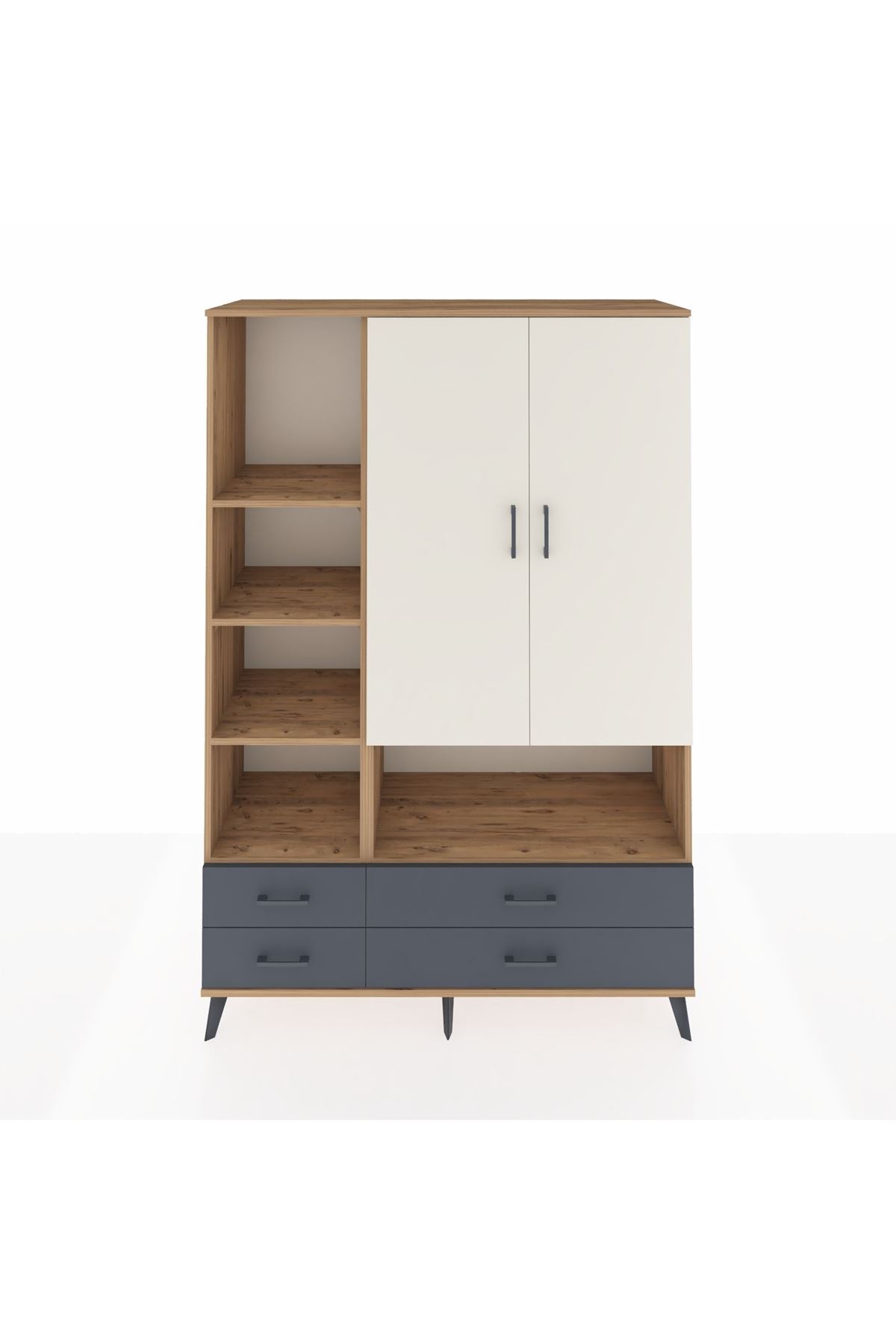 Hyperion Dolap 8 Raflı 4 Çekmeceli 2 Kapaklı 132x44x195 Çam-Aytaşı/Antrasit