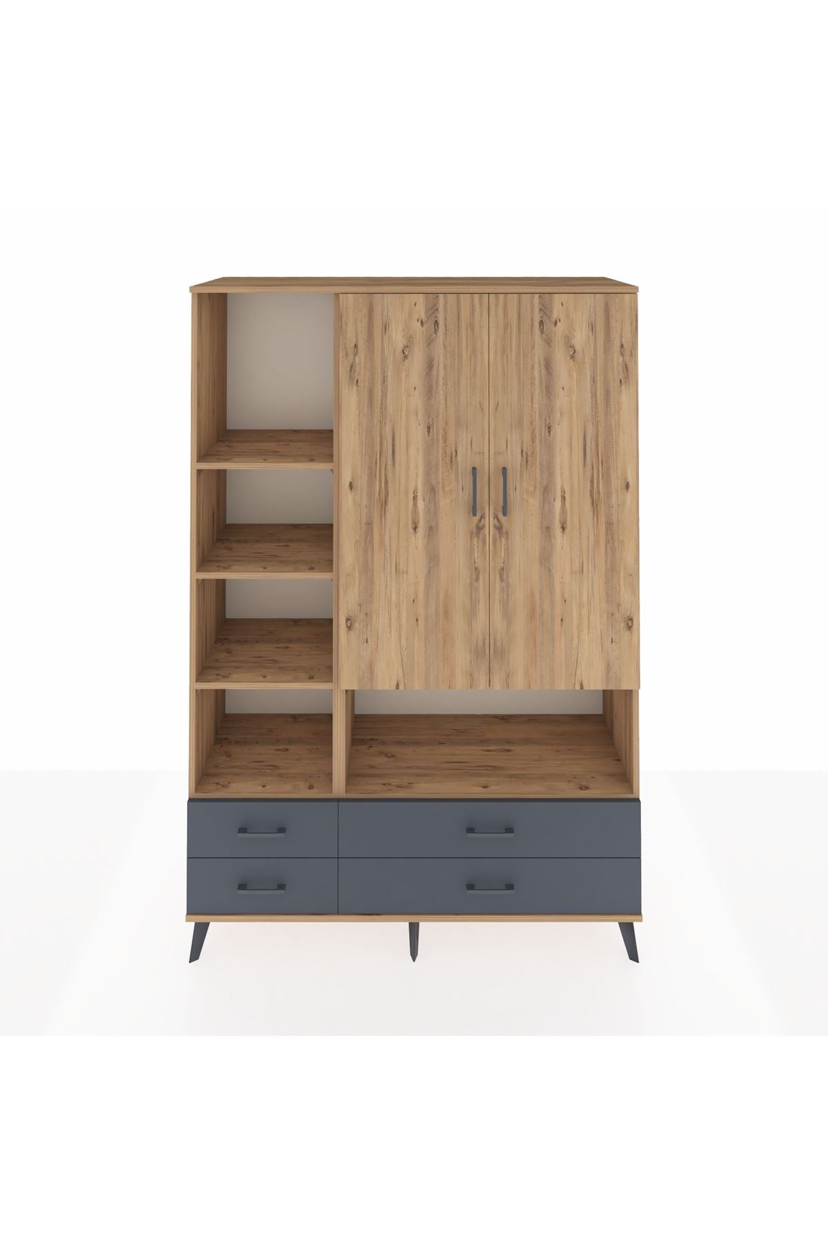Hyperion Dolap 8 Raflı 4 Çekmeceli 2 Kapaklı 132x44x195 Çam-Çam/Antrasit