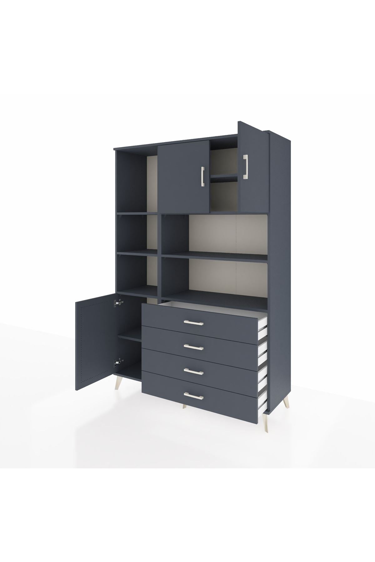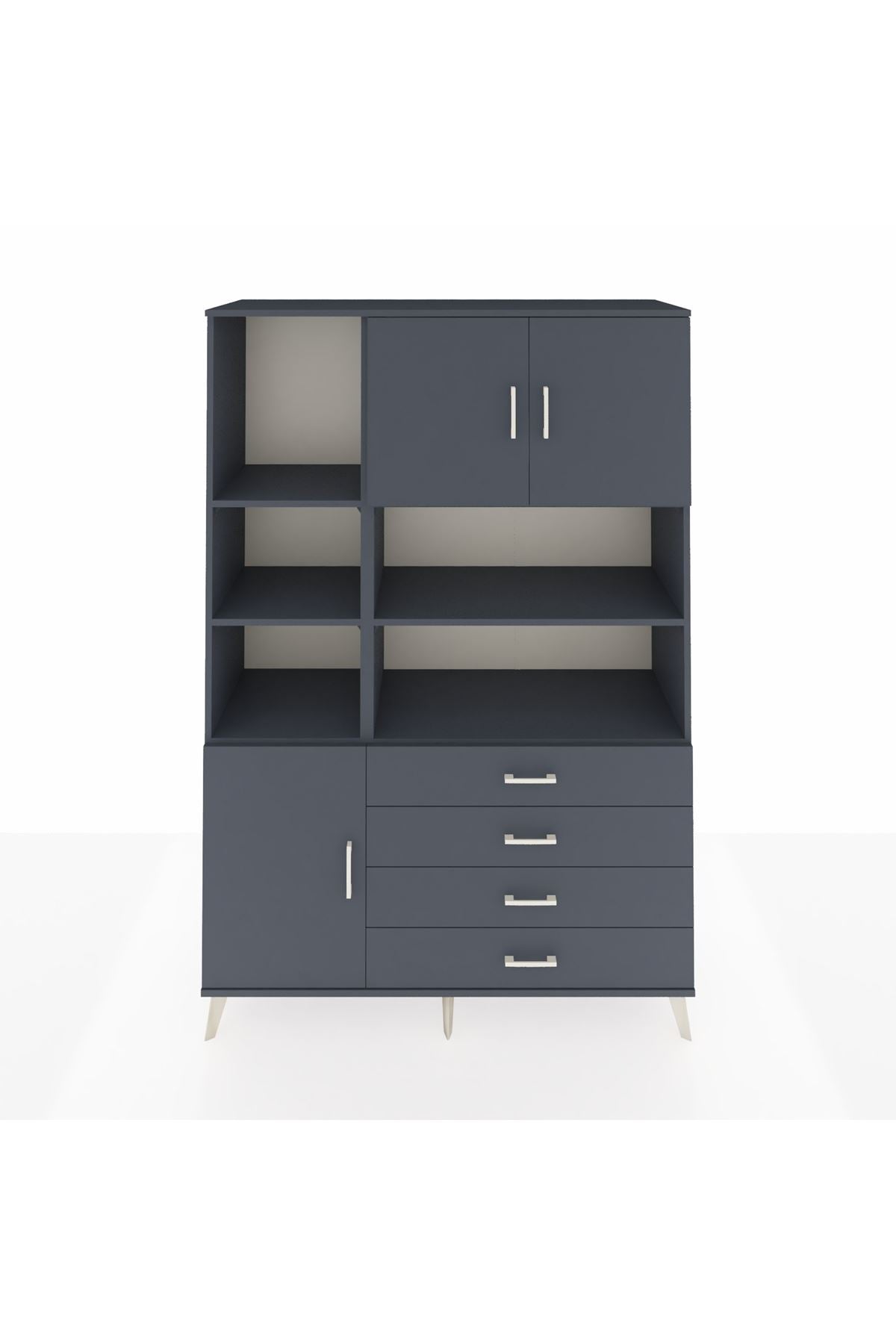 Hyperion Dolap 8 Raflı 4 Çekmeceli 3 Kapaklı 132x44x195 Antrasit-Antrasit/Antrasit