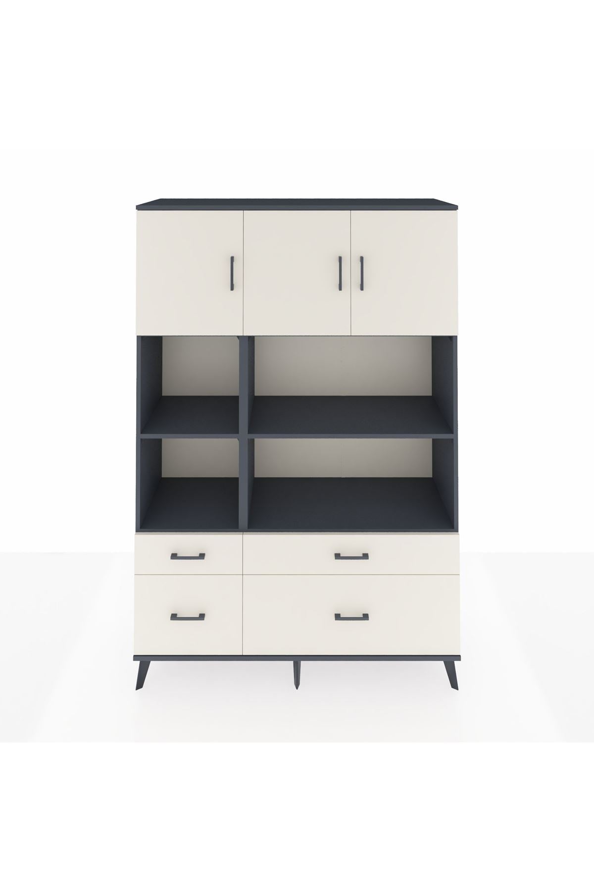 Hyperion Dolap 8 Raflı 4 Çekmeceli 3 Kapaklı 132x44x195 Antrasit-Aytaşı/Aytaşı