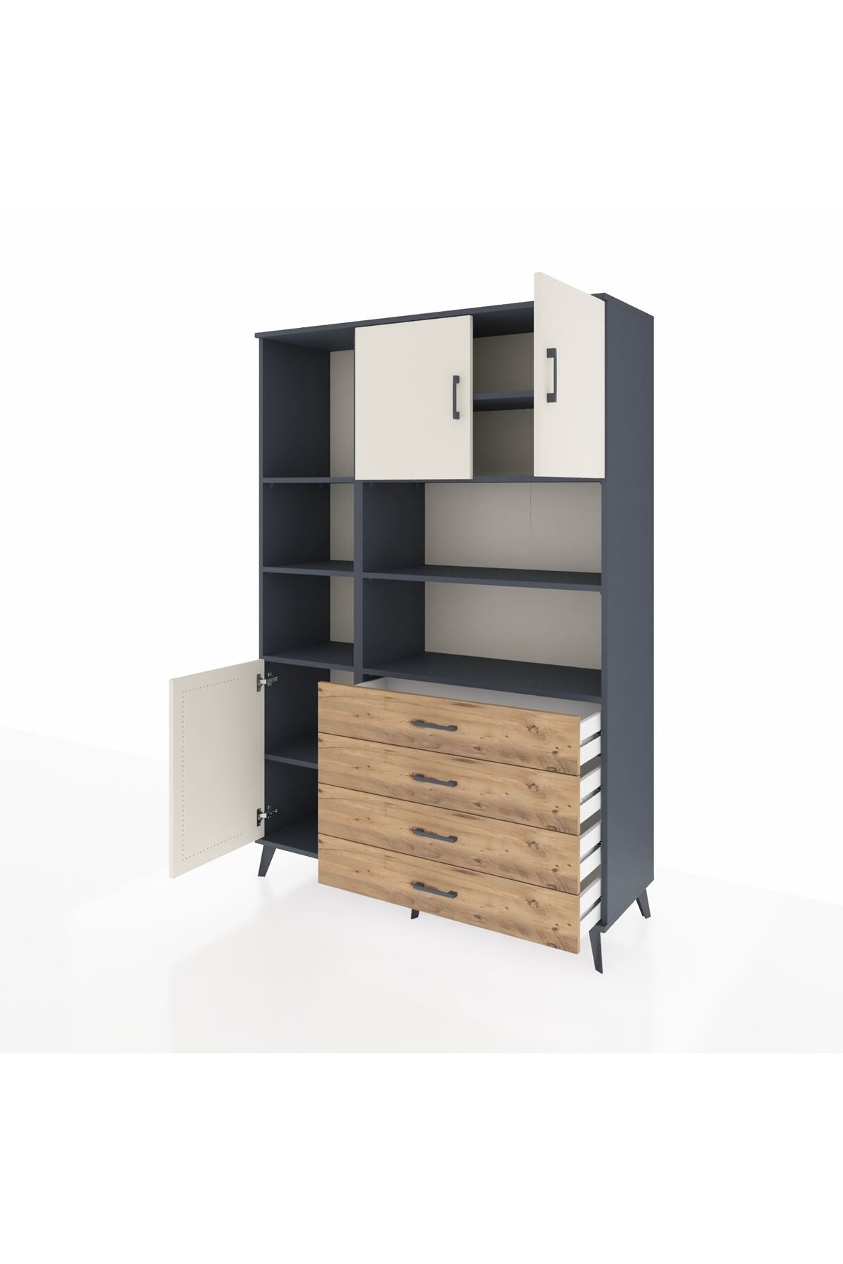 Hyperion Dolap 8 Raflı 4 Çekmeceli 3 Kapaklı 132x44x195 Antrasit-Aytaşı/Çam