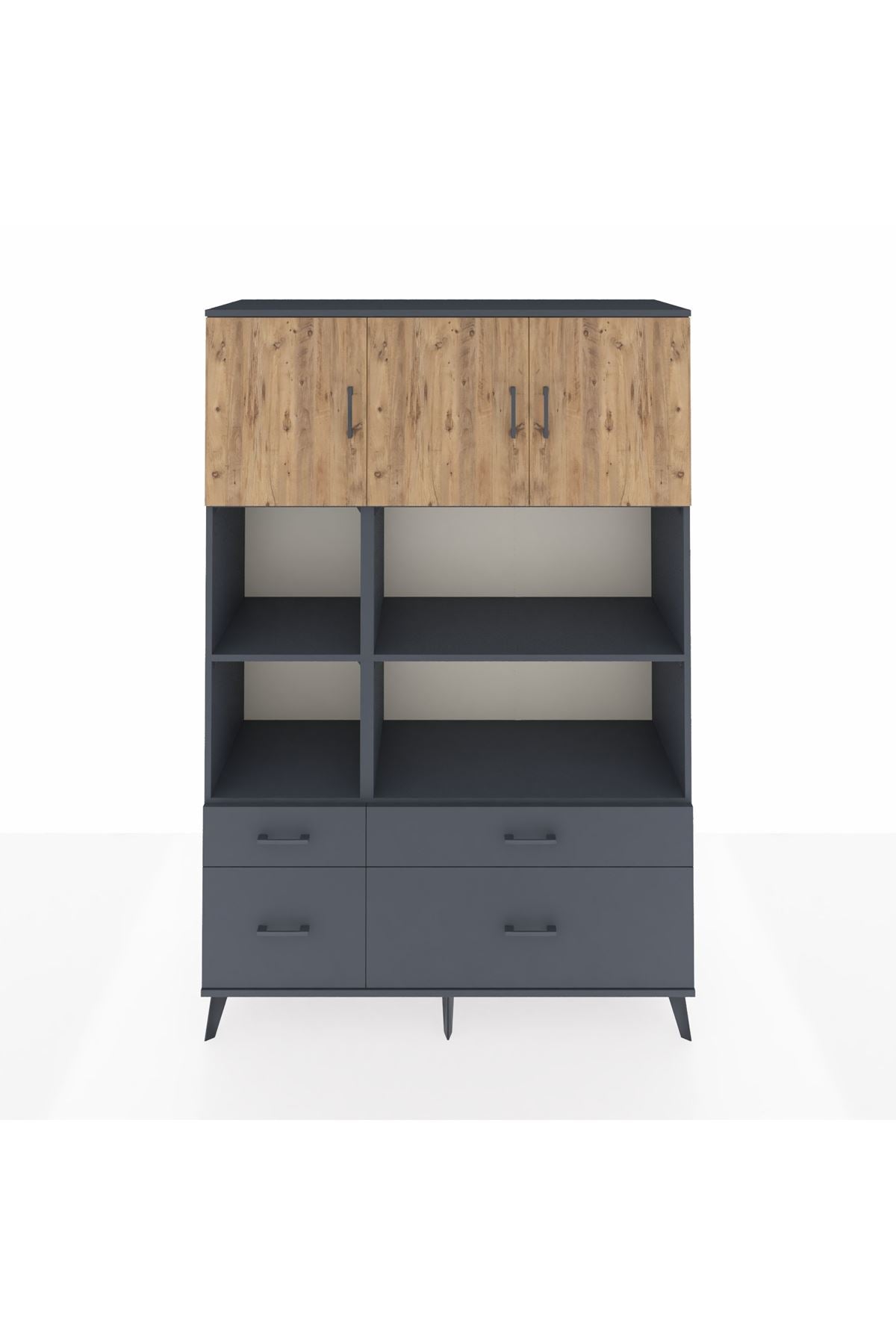 Hyperion Dolap 8 Raflı 4 Çekmeceli 3 Kapaklı 132x44x195 Antrasit-Çam/Antrasit
