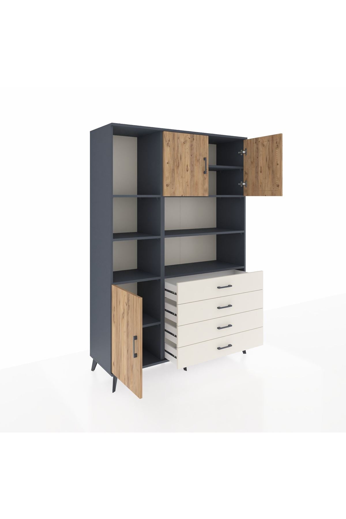 Hyperion Dolap 8 Raflı 4 Çekmeceli 3 Kapaklı 132x44x195 Antrasit-Çam/Aytaşı