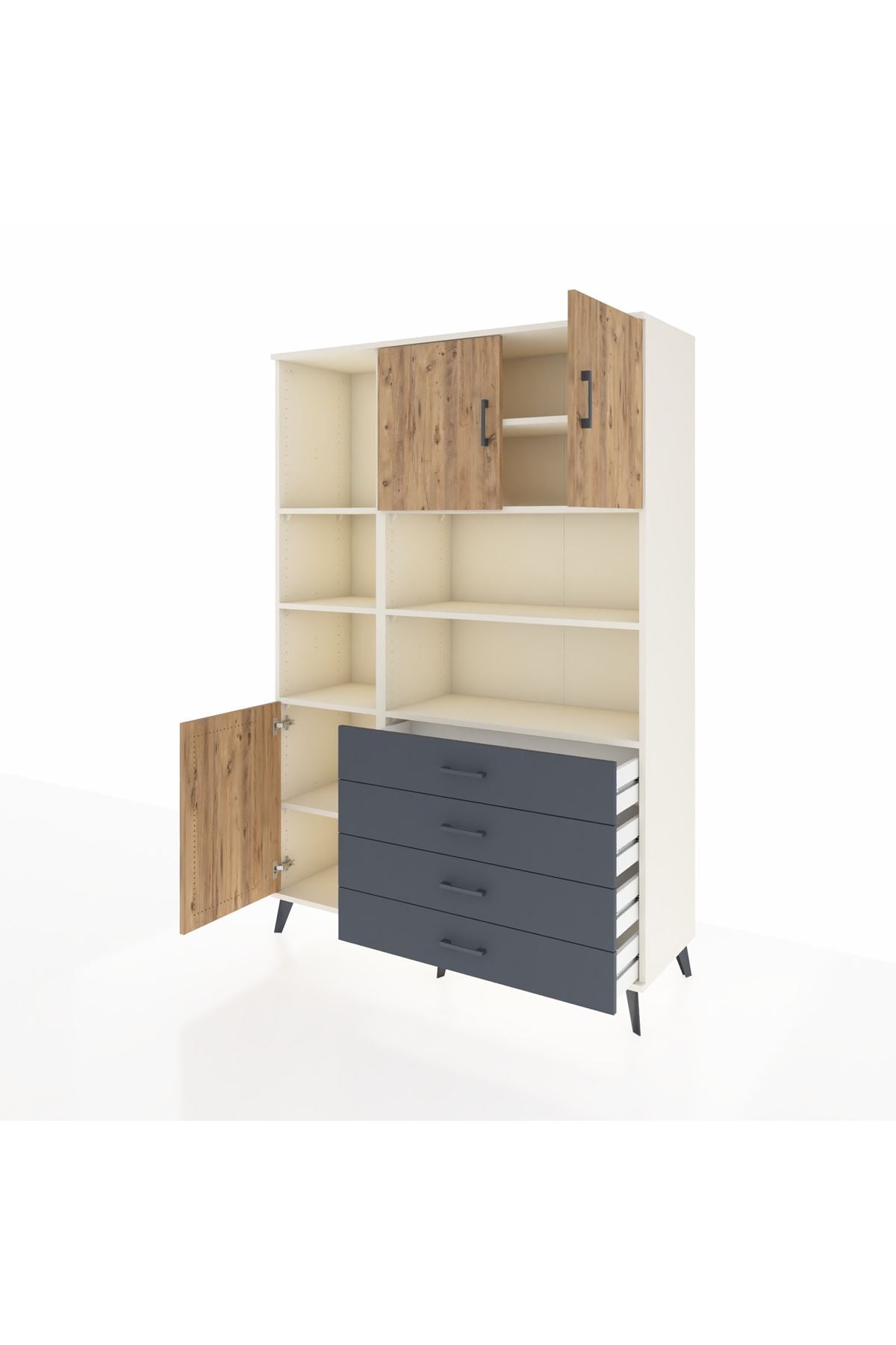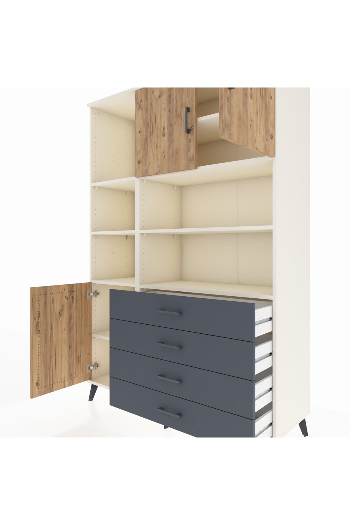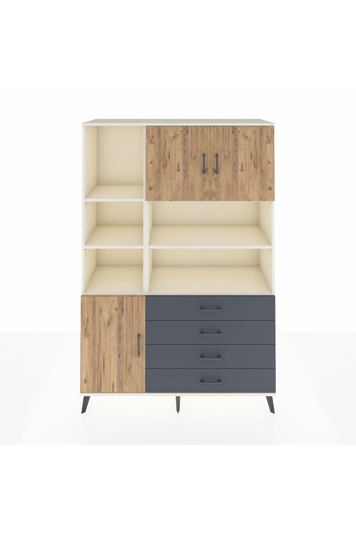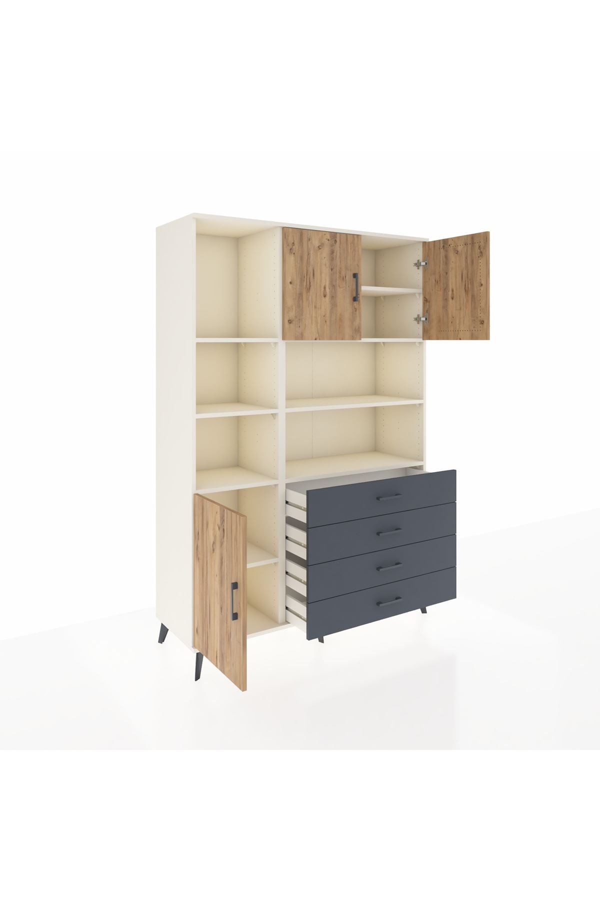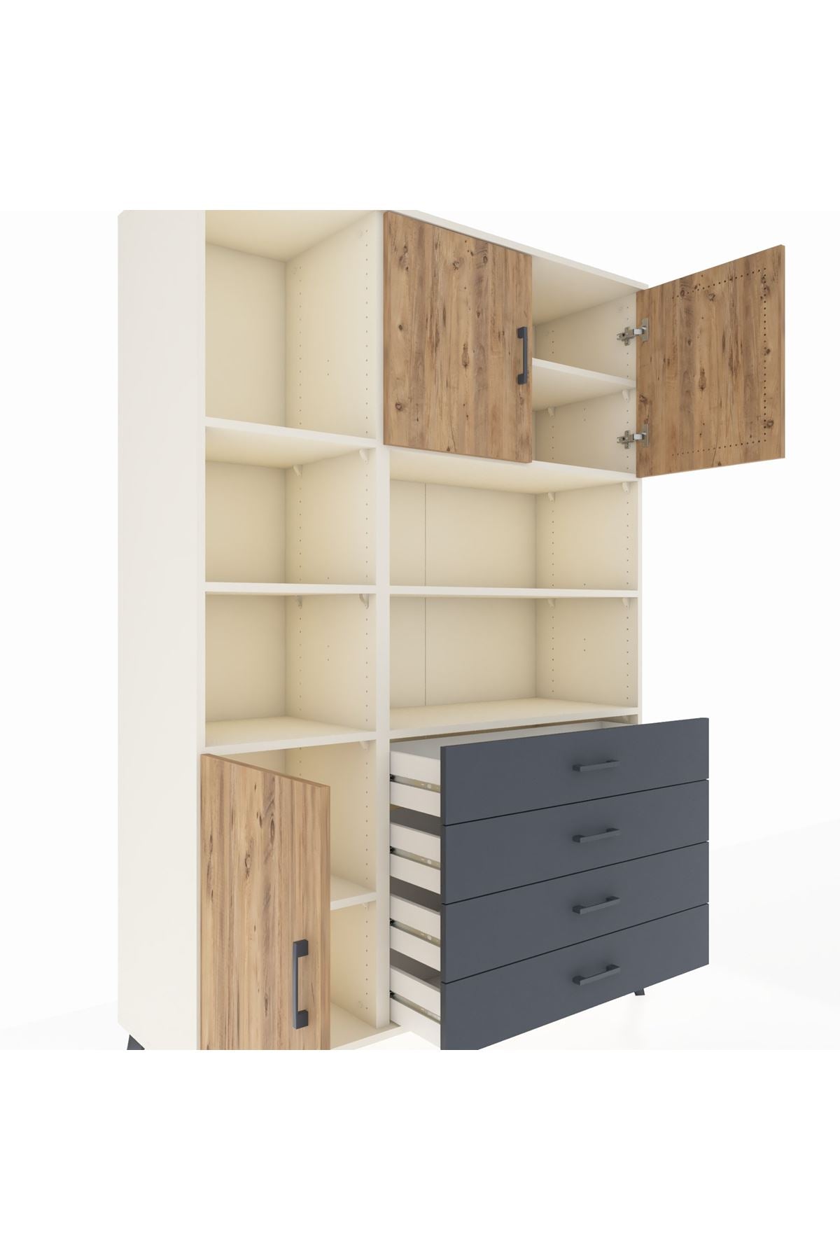 Hyperion Dolap 8 Raflı 4 Çekmeceli 3 Kapaklı 132x44x195 Aytaşı-Çam/Antrasit