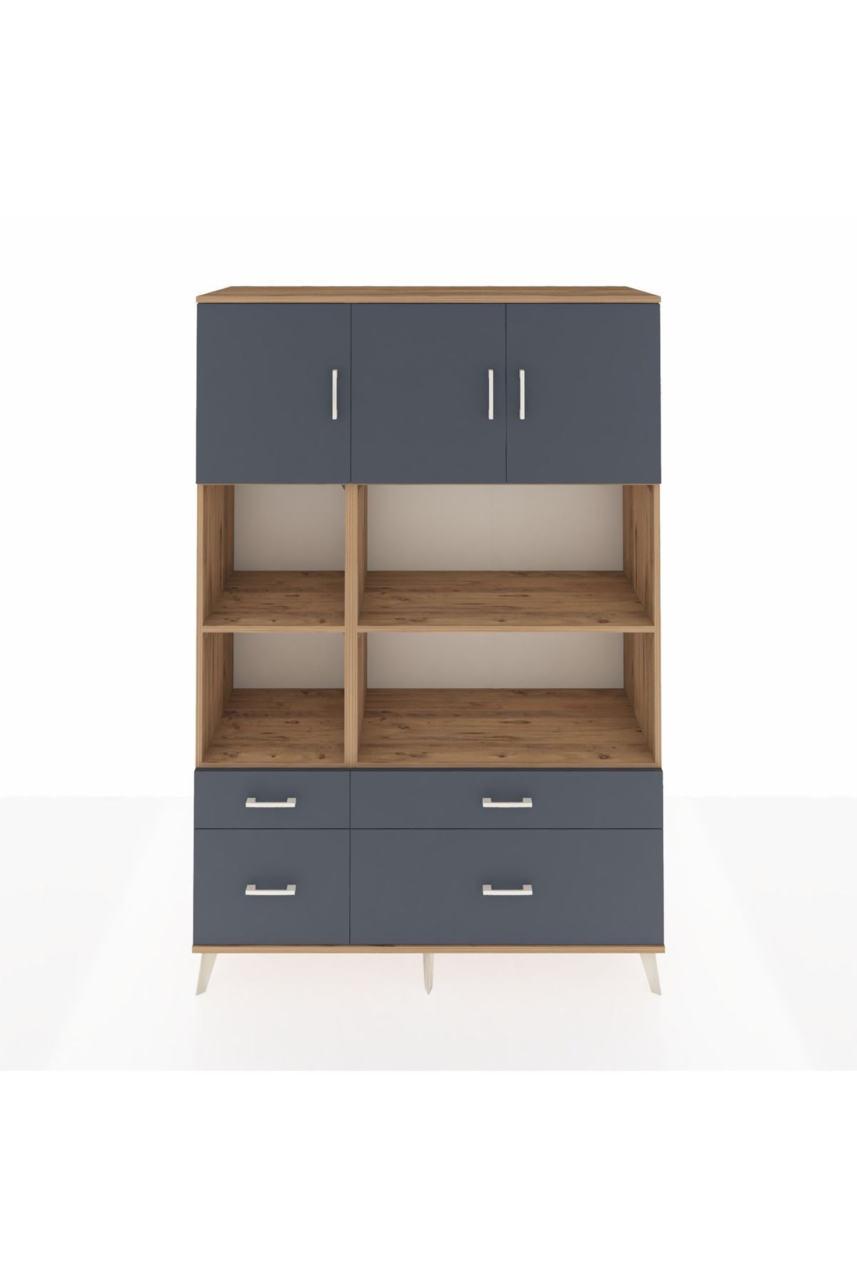 Hyperion Dolap 8 Raflı 4 Çekmeceli 3 Kapaklı 132x44x195 Çam-Antrasit/Antrasit