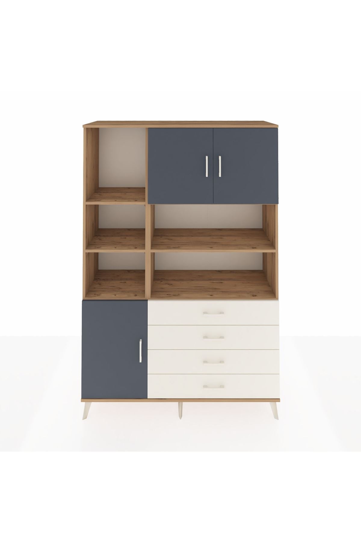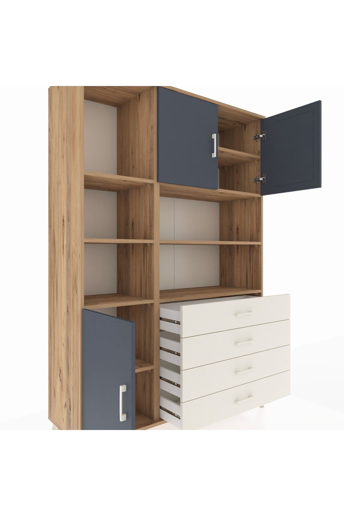 Hyperion Dolap 8 Raflı 4 Çekmeceli 3 Kapaklı 132x44x195 Çam-Antrasit/Aytaşı
