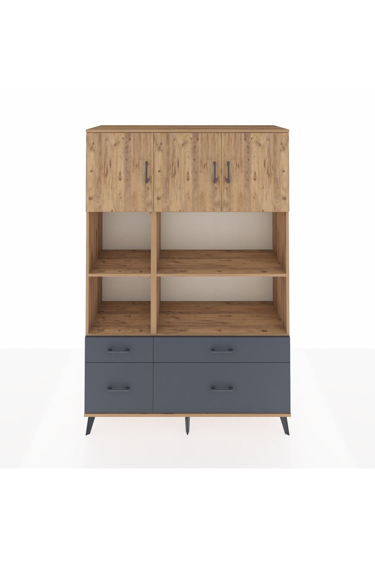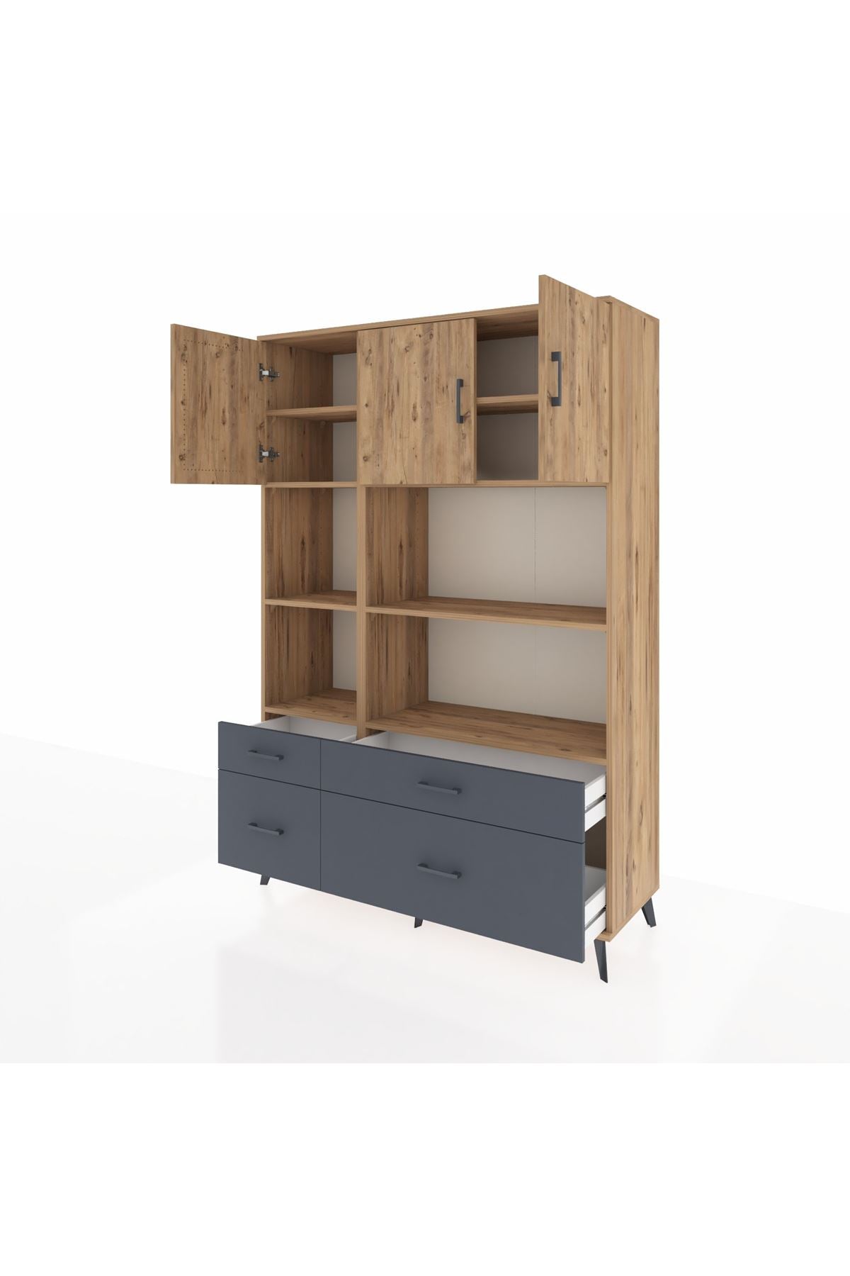Hyperion Dolap 8 Raflı 4 Çekmeceli 3 Kapaklı 132x44x195 Çam-Çam/Antrasit