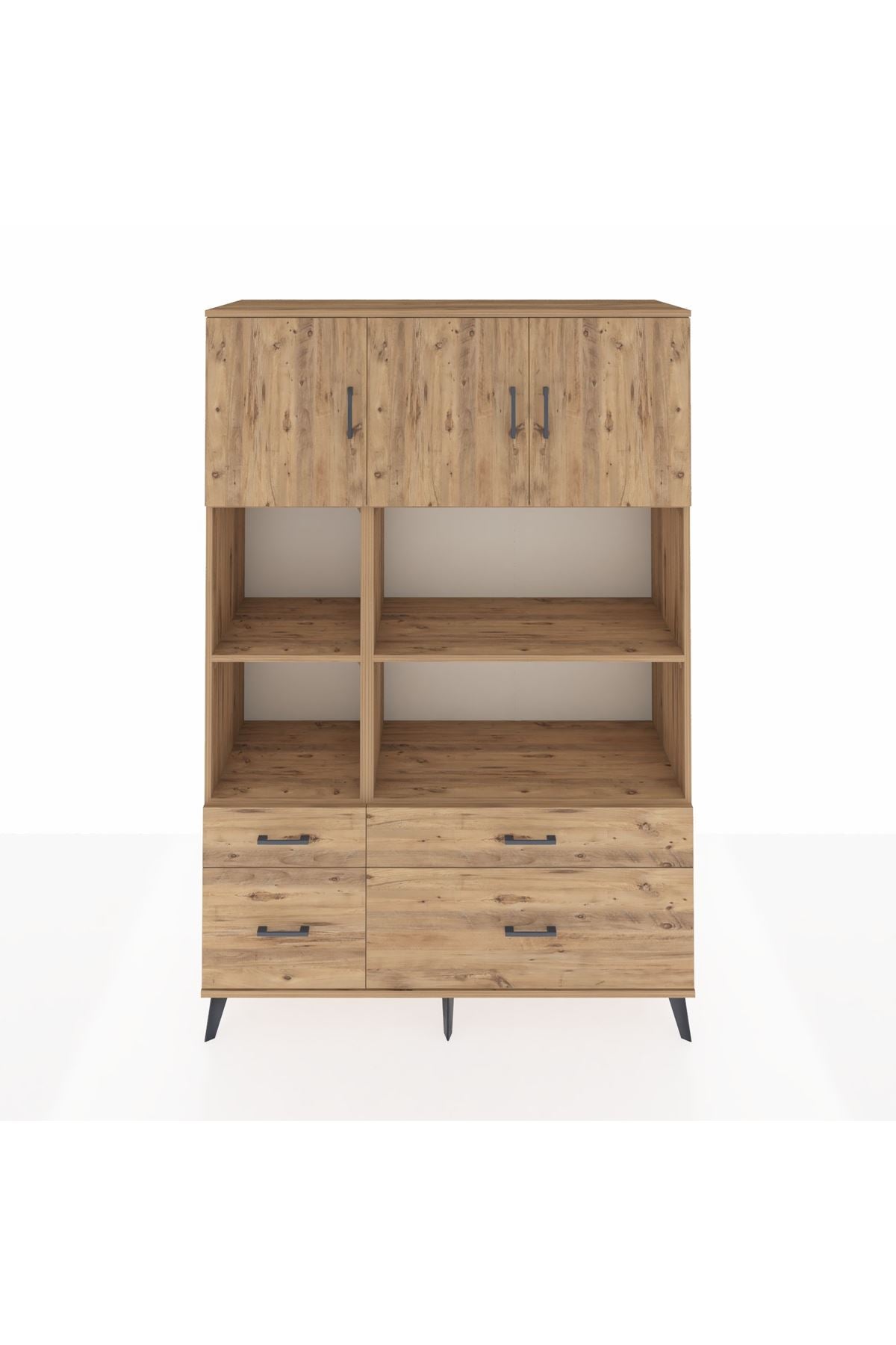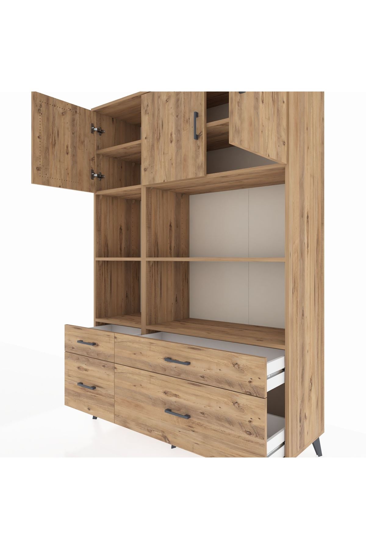 Hyperion Dolap 8 Raflı 4 Çekmeceli 3 Kapaklı 132x44x195 Çam-Çam/Çam