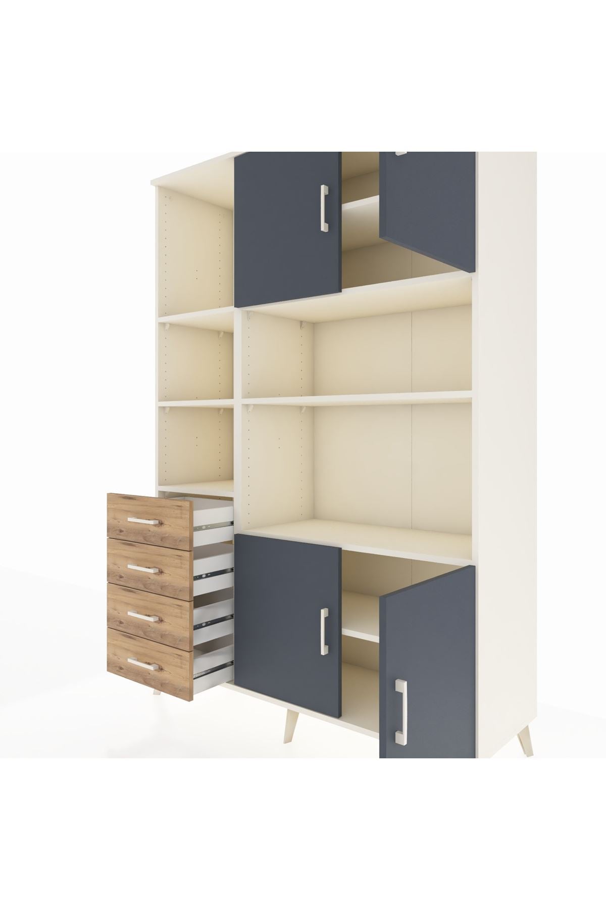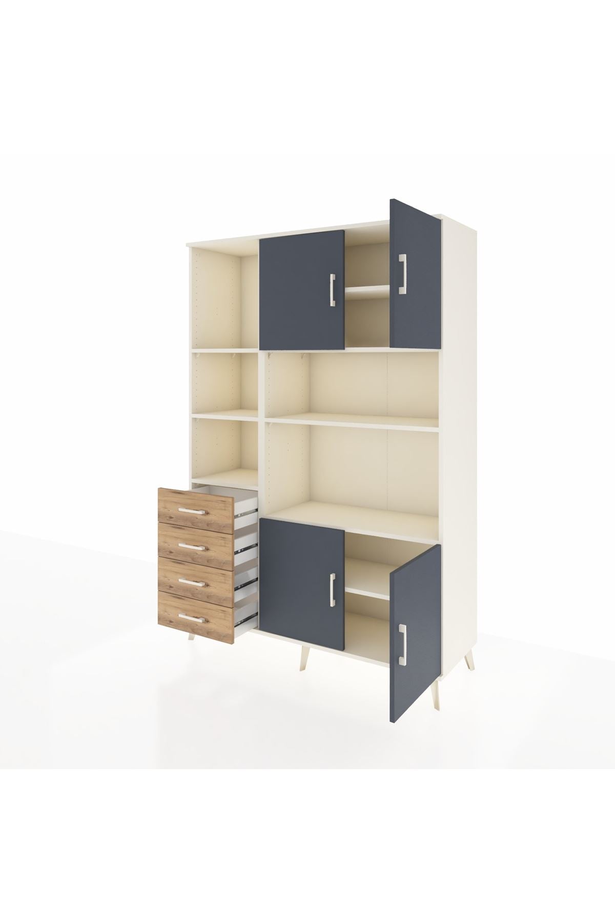 Hyperion Dolap 8 Raflı 4 Çekmeceli 4 Kapaklı 132x44x195 Aytaşı-Antrasit/Çam
