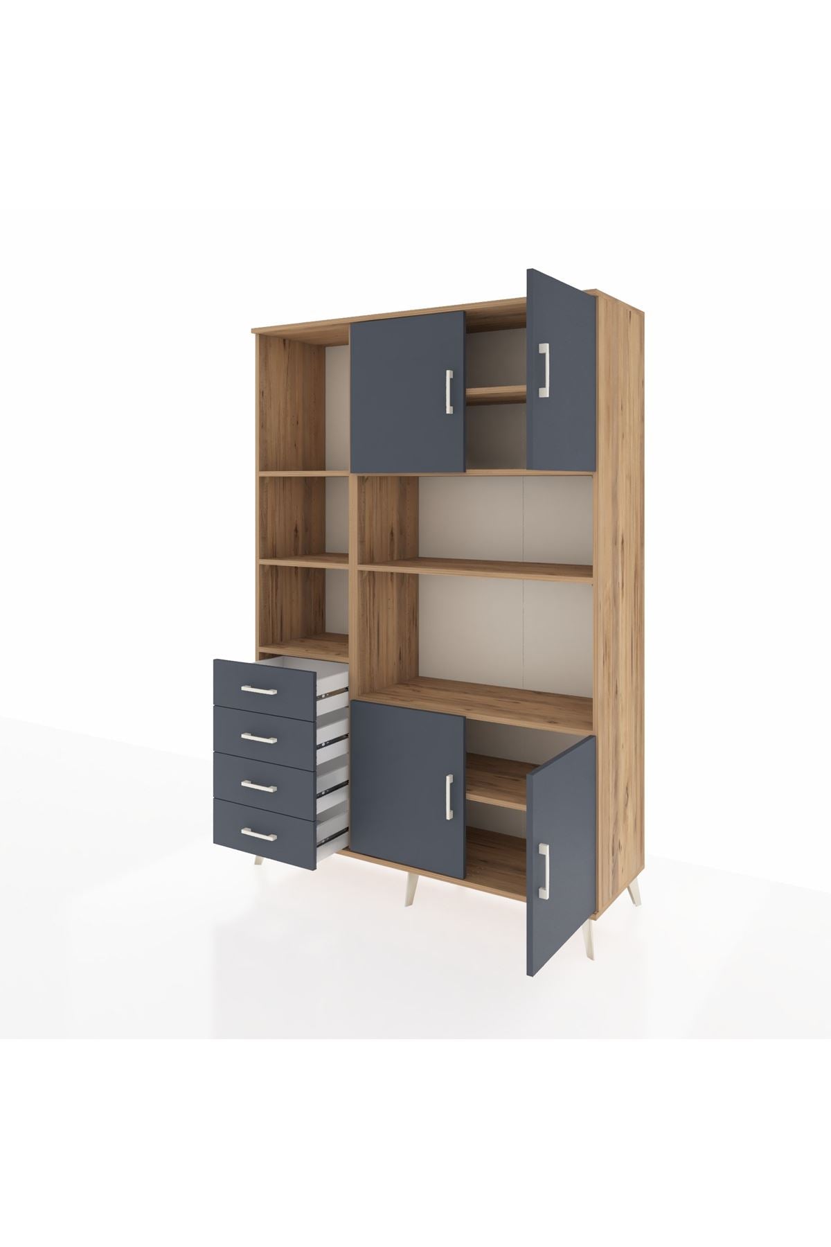 Hyperion Dolap 8 Raflı 4 Çekmeceli 4 Kapaklı 132x44x195 Çam-Antrasit/Antrasit