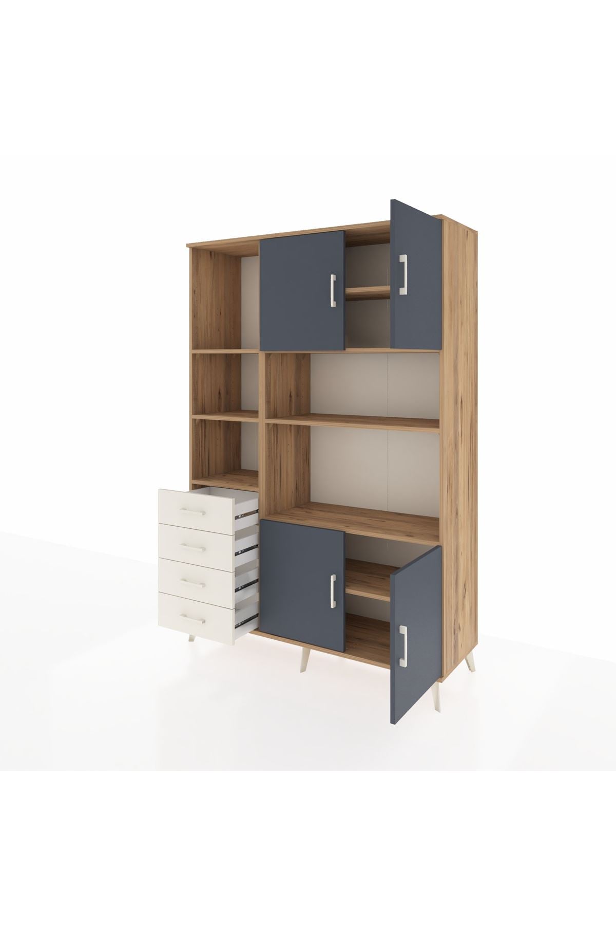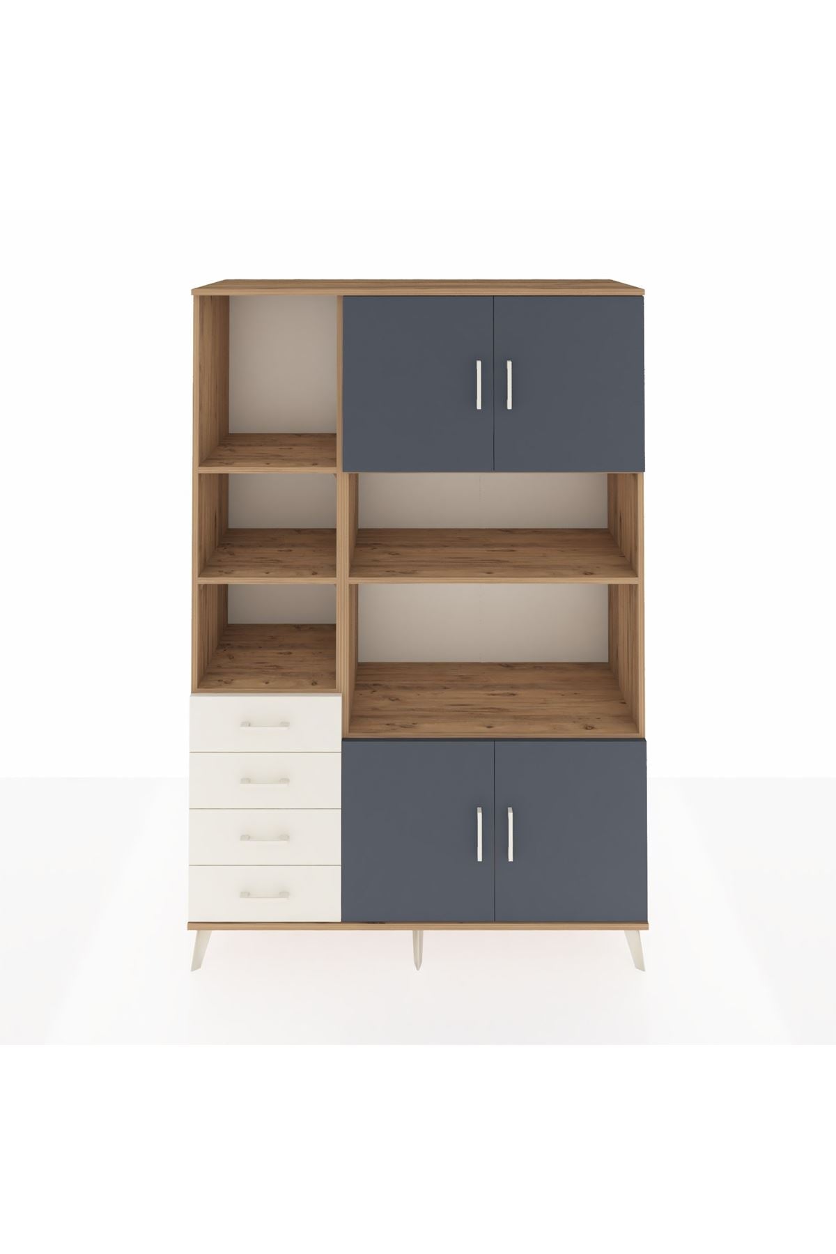 Hyperion Dolap 8 Raflı 4 Çekmeceli 4 Kapaklı 132x44x195 Çam-Antrasit/Aytaşı
