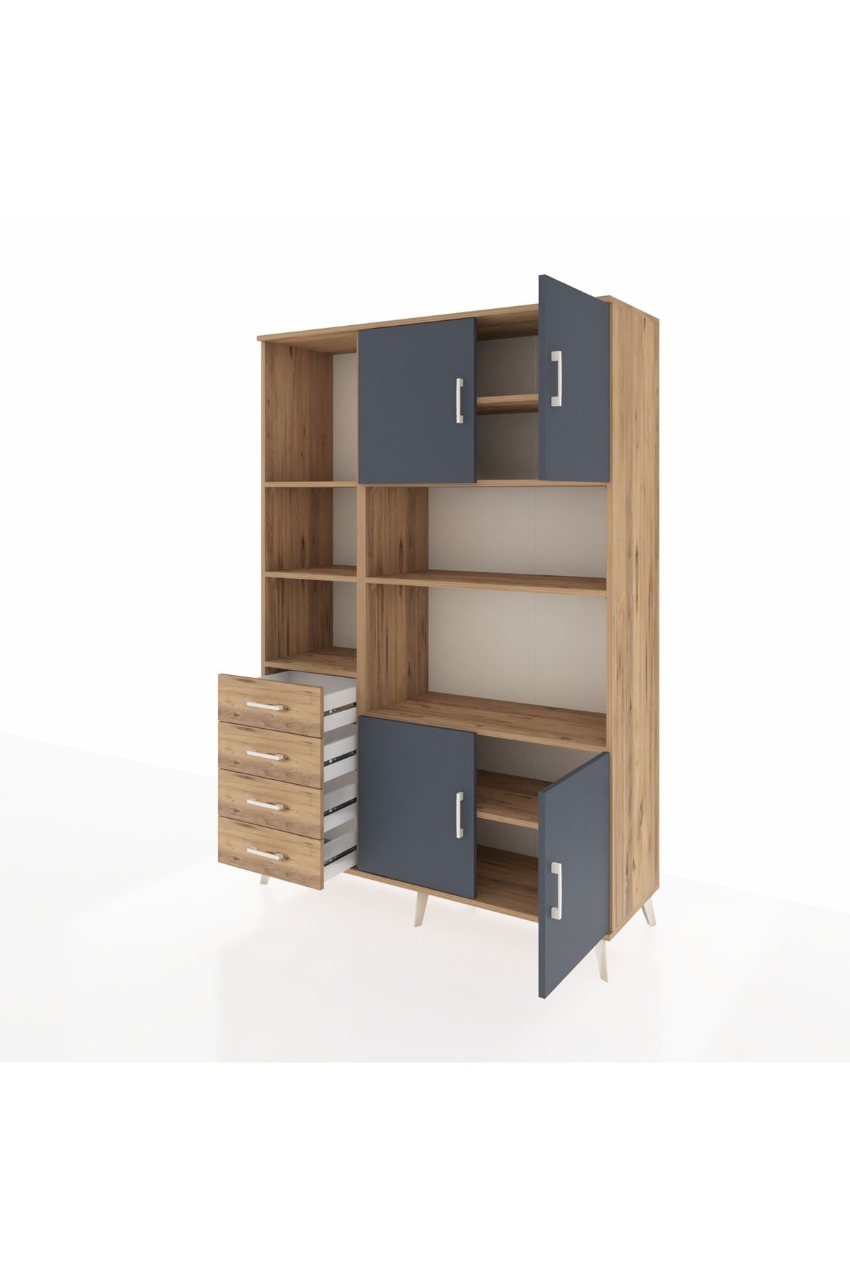 Hyperion Dolap 8 Raflı 4 Çekmeceli 4 Kapaklı 132x44x195 Çam-Antrasit/Çam