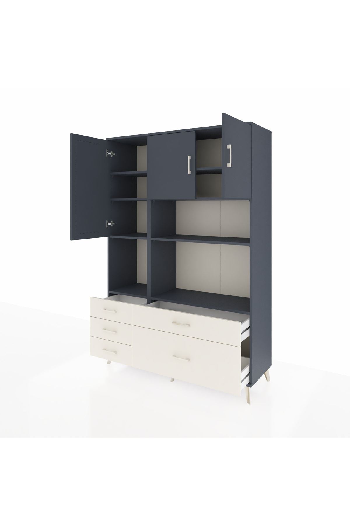 Hyperion Dolap 8 Raflı 5 Çekmeceli 3 Kapaklı 132x44x195 Antrasit-Antrasit/Aytaşı