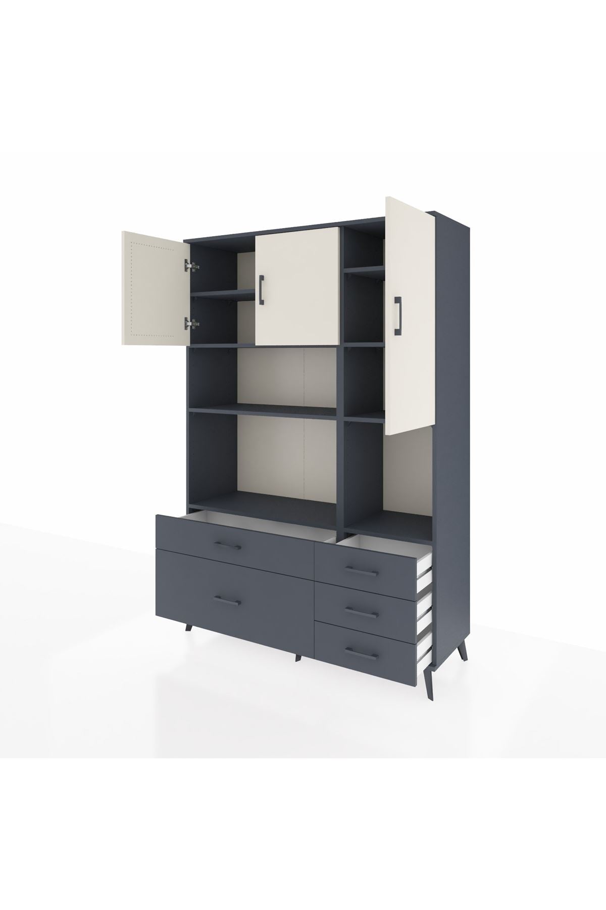 Hyperion Dolap 8 Raflı 5 Çekmeceli 3 Kapaklı 132x44x195 Antrasit-Aytaşı/Antrasit
