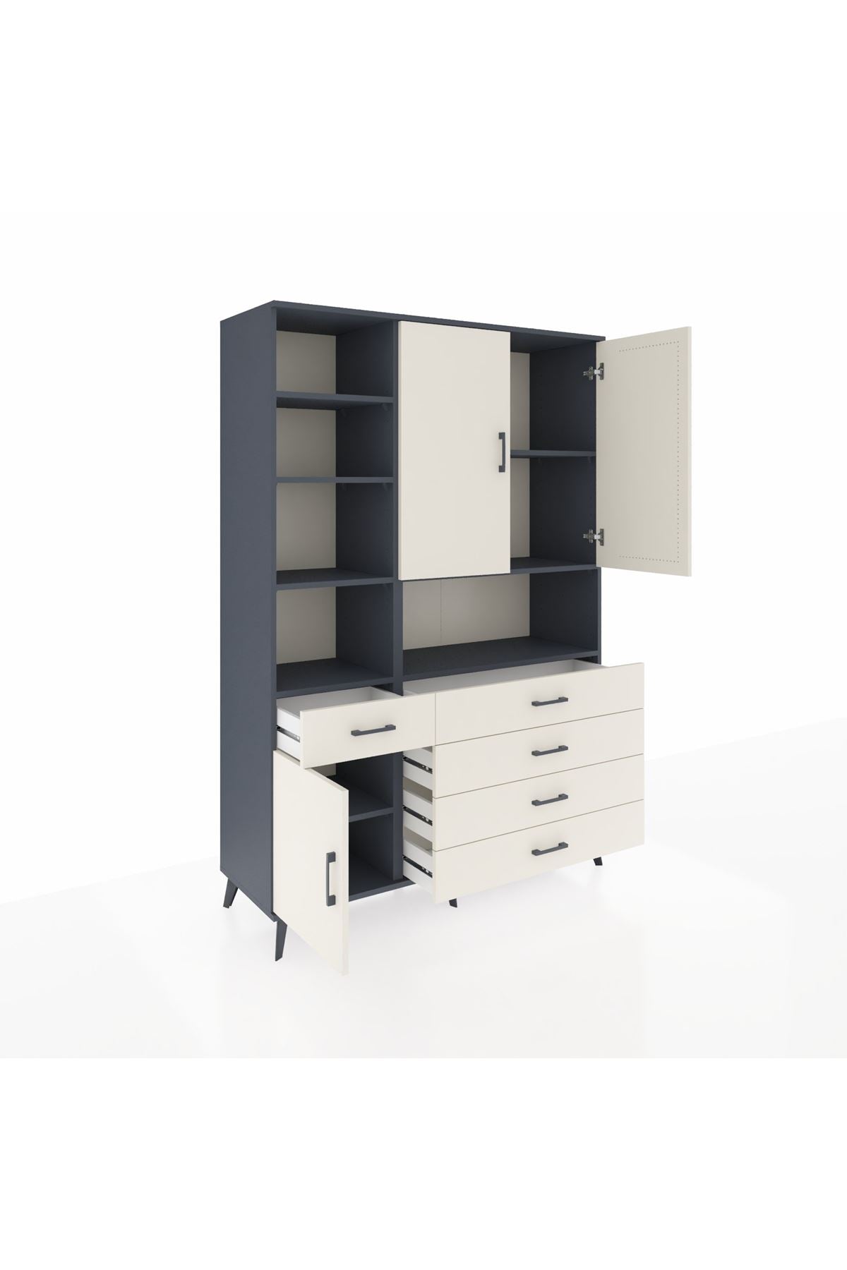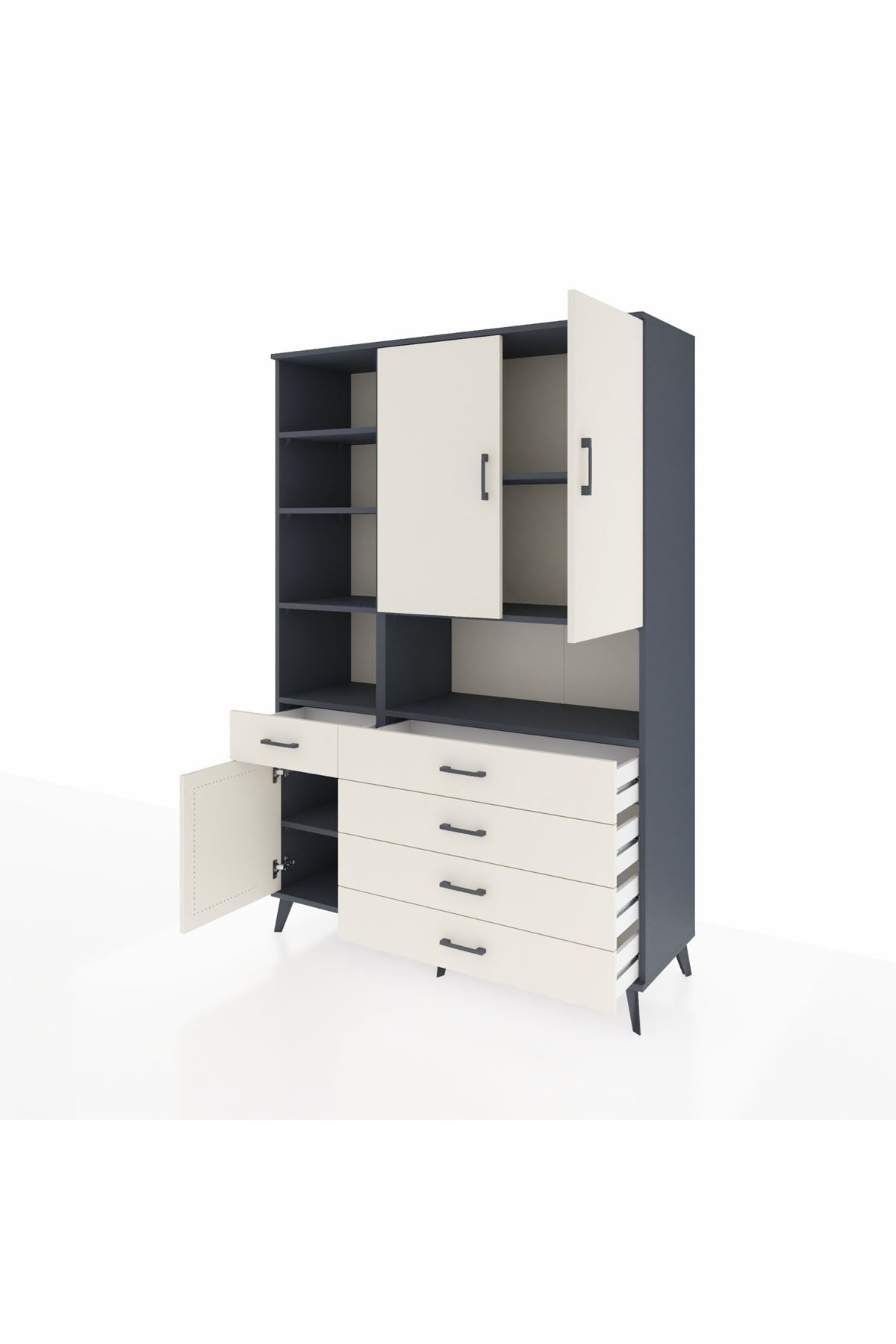 Hyperion Dolap 8 Raflı 5 Çekmeceli 3 Kapaklı 132x44x195 Antrasit-Aytaşı/Aytaşı