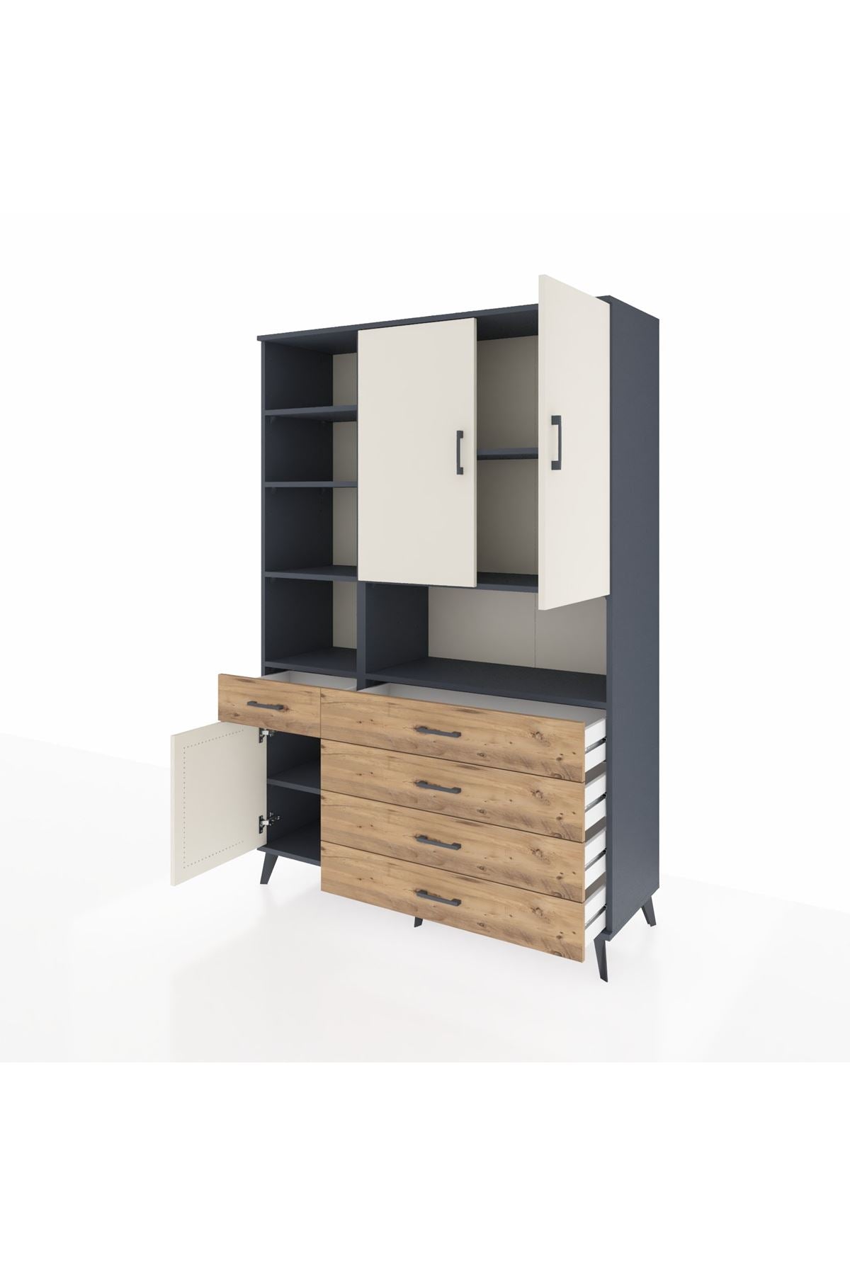 Hyperion Dolap 8 Raflı 5 Çekmeceli 3 Kapaklı 132x44x195 Antrasit-Aytaşı/Çam