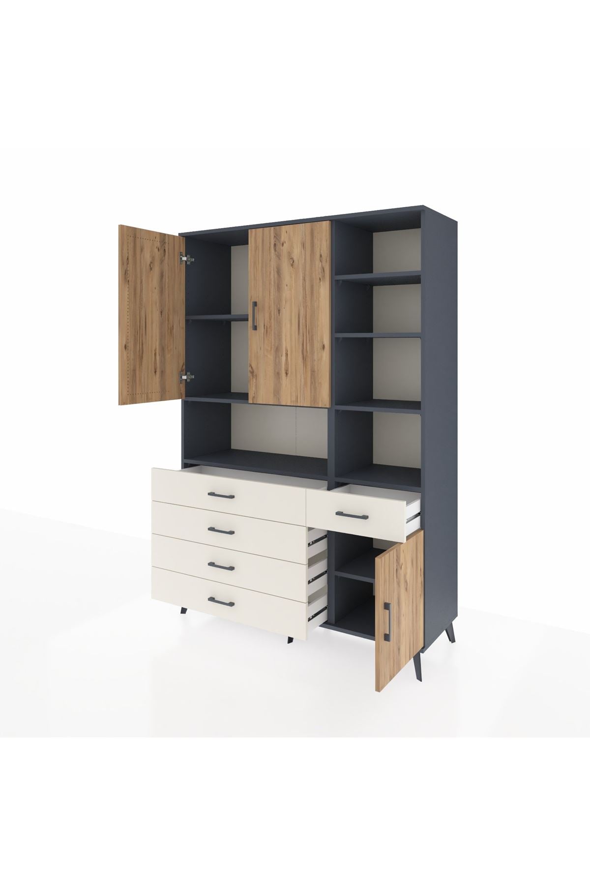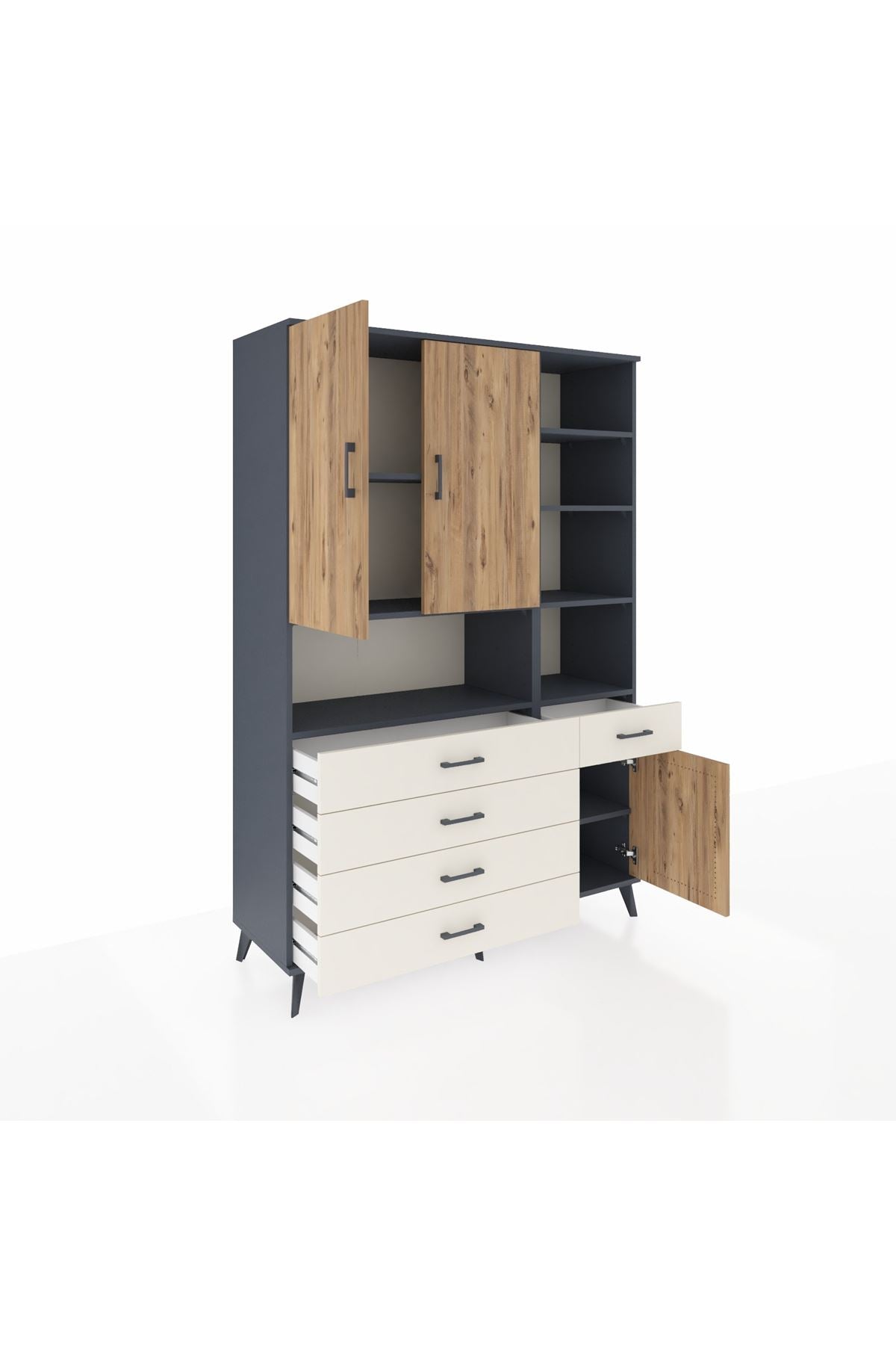 Hyperion Dolap 8 Raflı 5 Çekmeceli 3 Kapaklı 132x44x195 Antrasit-Çam/Aytaşı