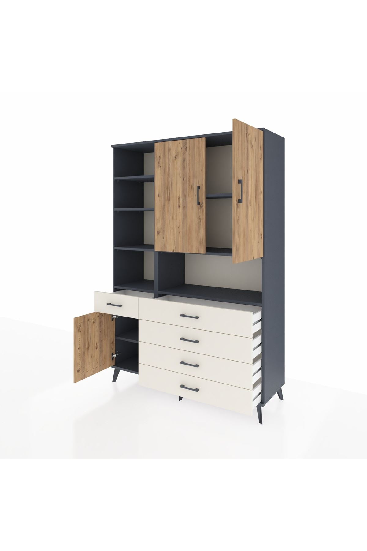 Hyperion Dolap 8 Raflı 5 Çekmeceli 3 Kapaklı 132x44x195 Antrasit-Çam/Aytaşı