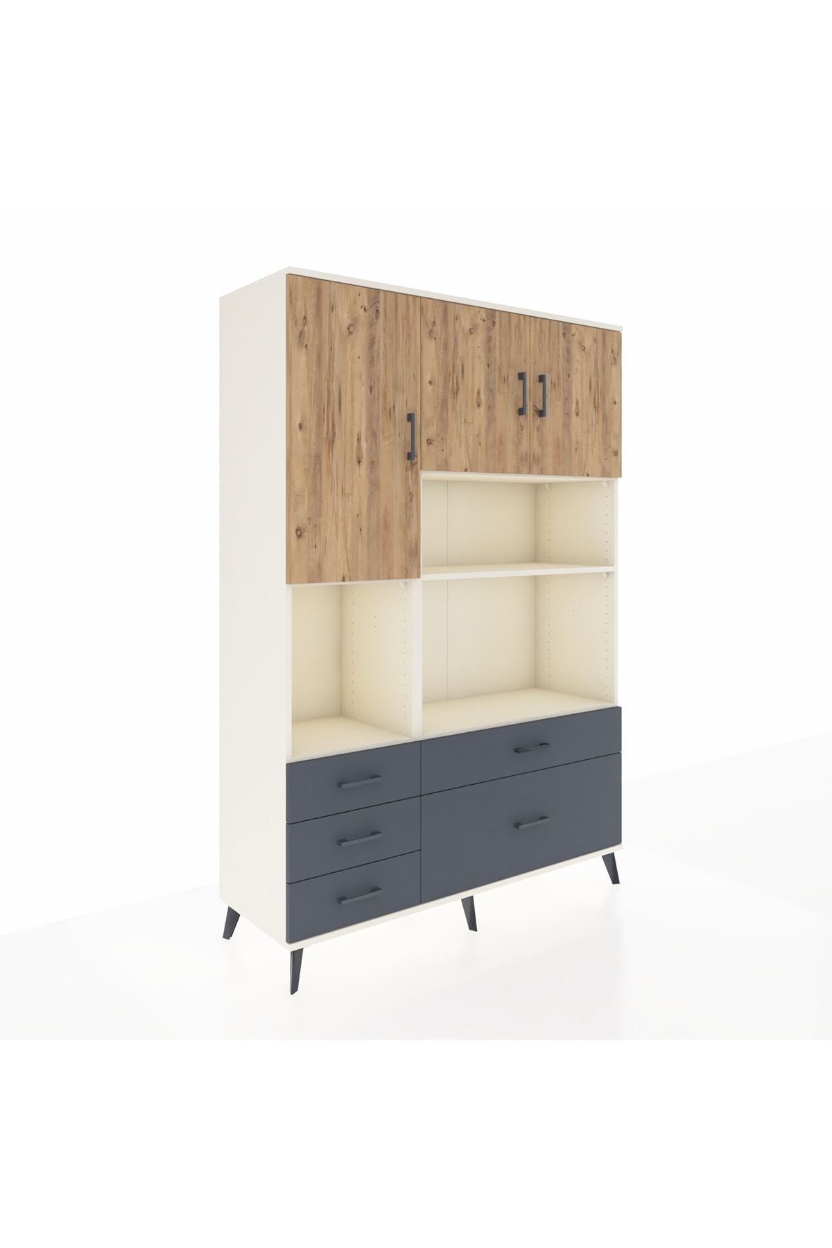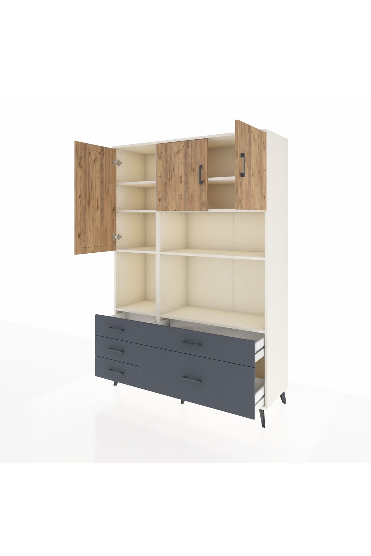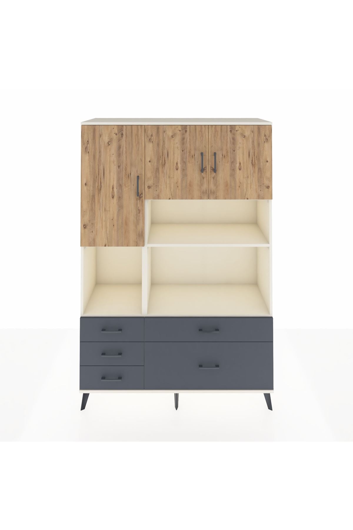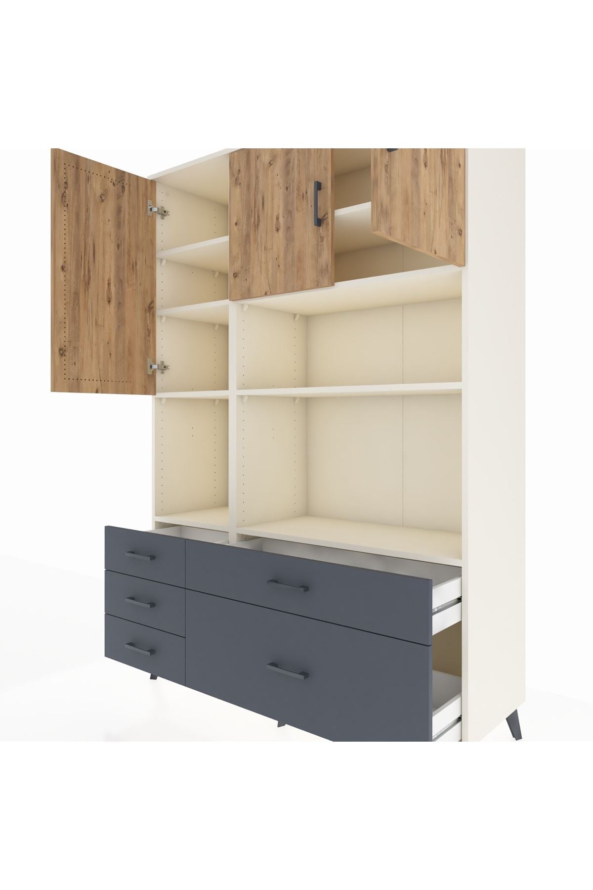 Hyperion Dolap 8 Raflı 5 Çekmeceli 3 Kapaklı 132x44x195 Aytaşı-Çam/Antrasit