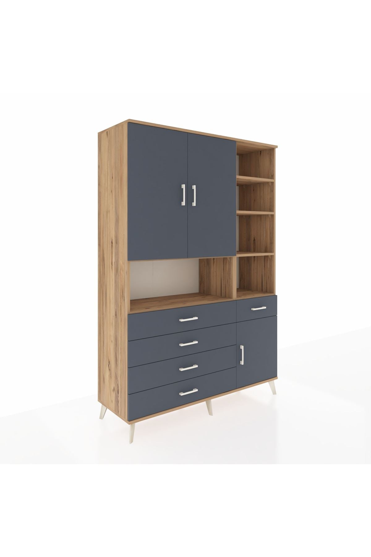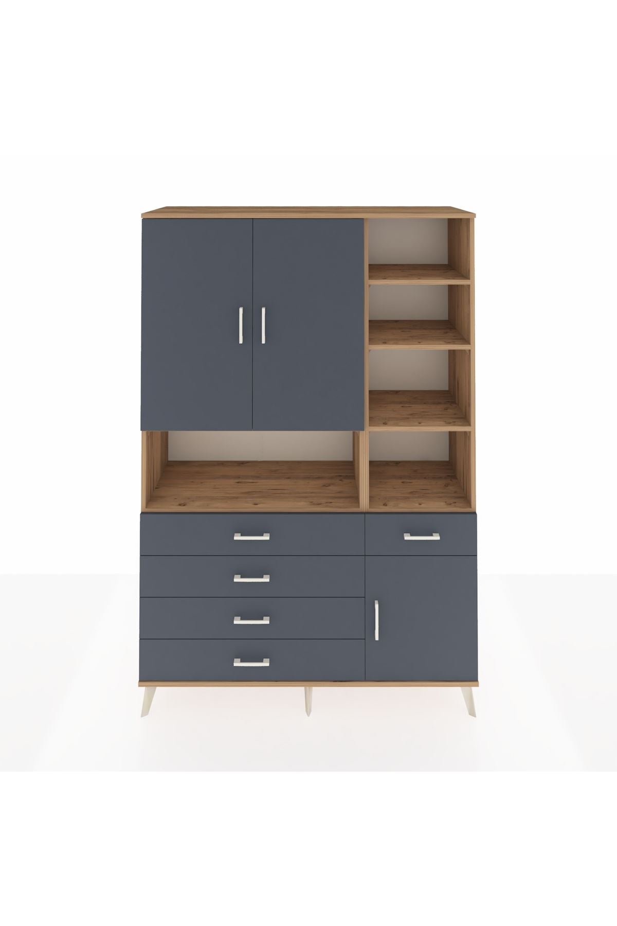 Hyperion Dolap 8 Raflı 5 Çekmeceli 3 Kapaklı 132x44x195 Çam-Antrasit/Antrasit