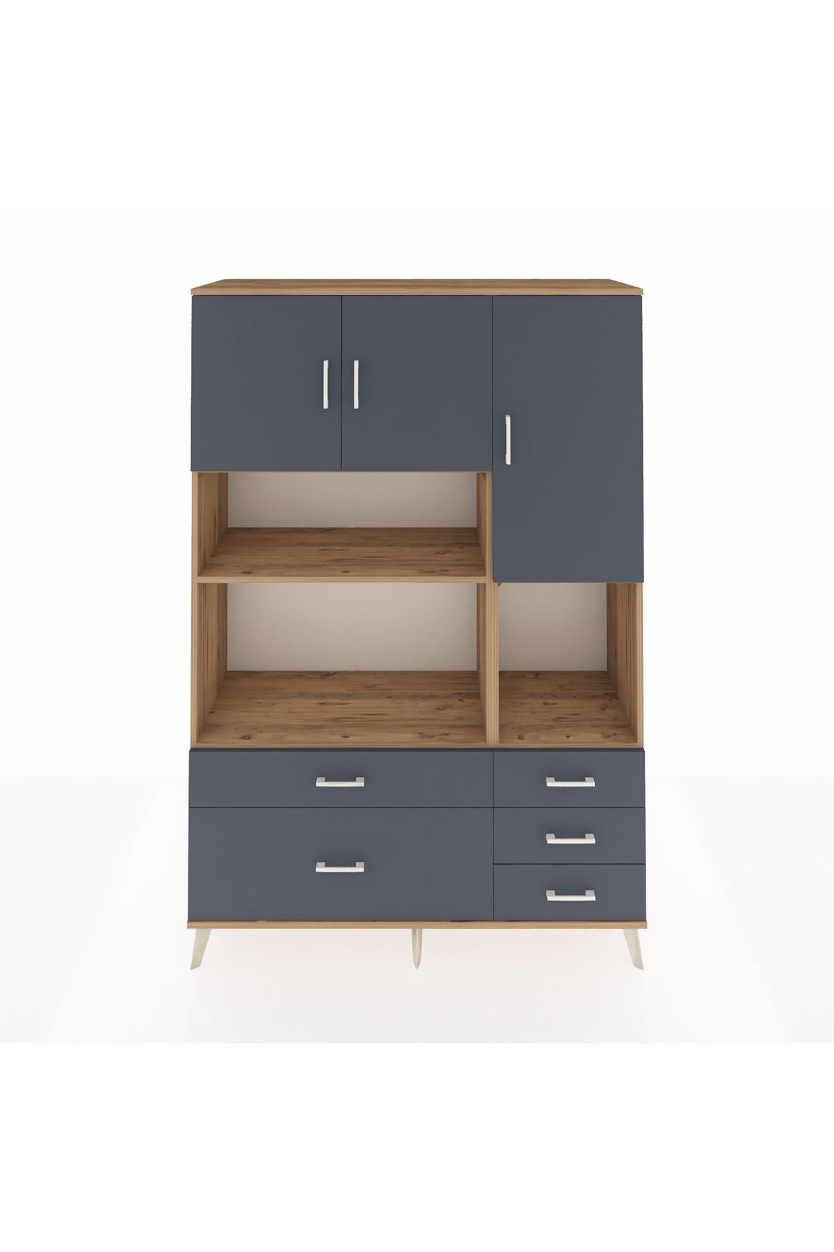 Hyperion Dolap 8 Raflı 5 Çekmeceli 3 Kapaklı 132x44x195 Çam-Antrasit/Antrasit
