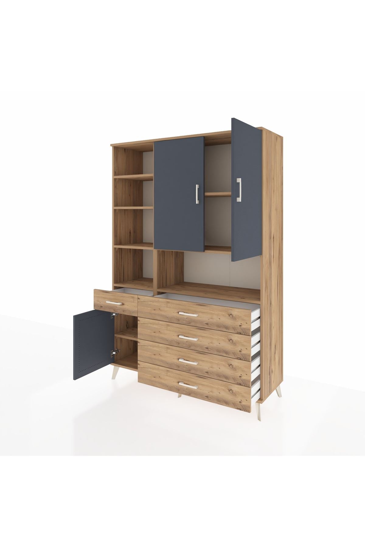 Hyperion Dolap 8 Raflı 5 Çekmeceli 3 Kapaklı 132x44x195 Çam-Antrasit/Çam