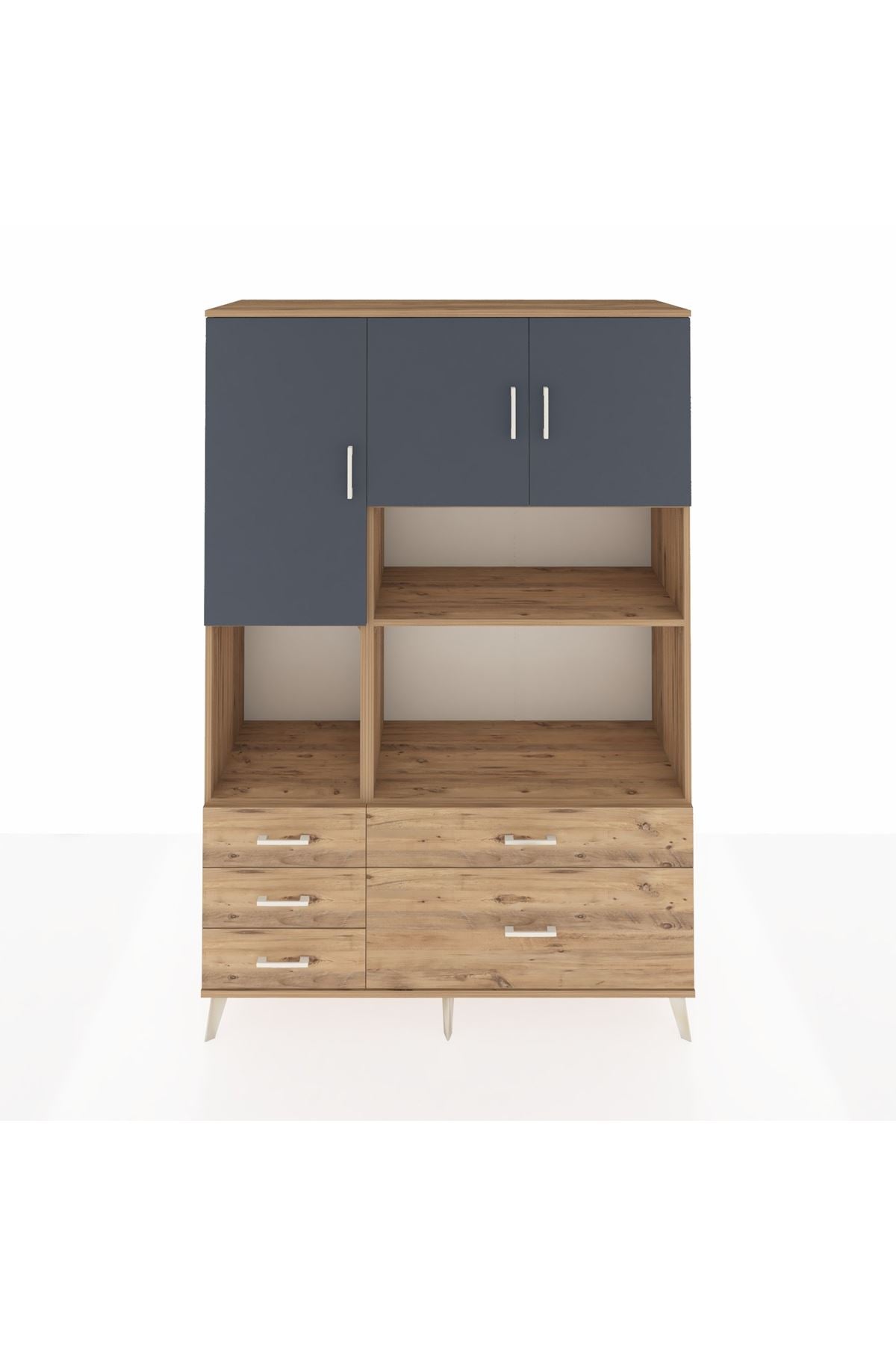 Hyperion Dolap 8 Raflı 5 Çekmeceli 3 Kapaklı 132x44x195 Çam-Antrasit/Çam